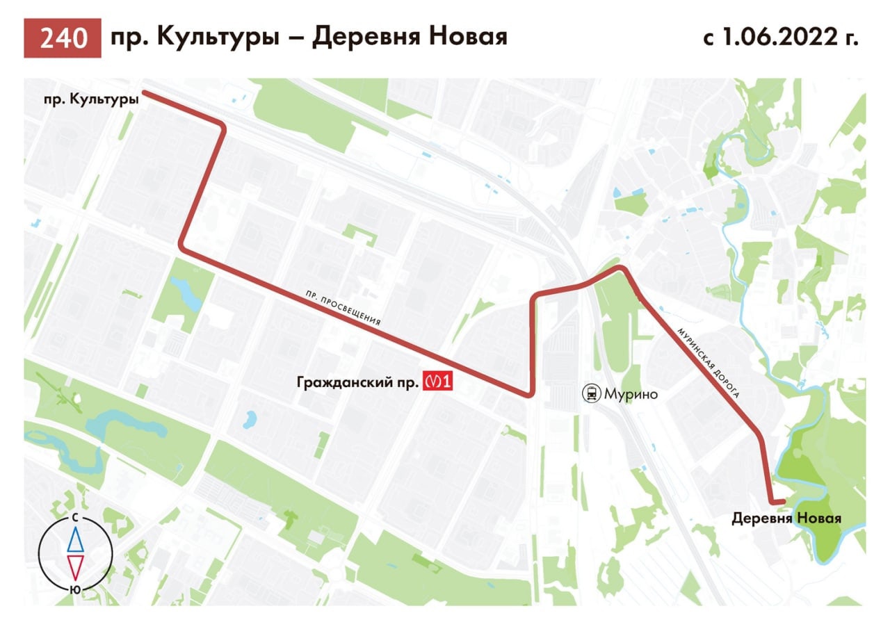 Автобус №240 будет также проходить через школы, детсады и ТЦ района. Как сообщили телеканалу «Санкт-Петербург» в пресс-службе комитета по транспорту, новый маршрут компенсирует отмену автобуса №61 – его оставят только на трассе от ЖК «Цветной город» до метро «Академическая».