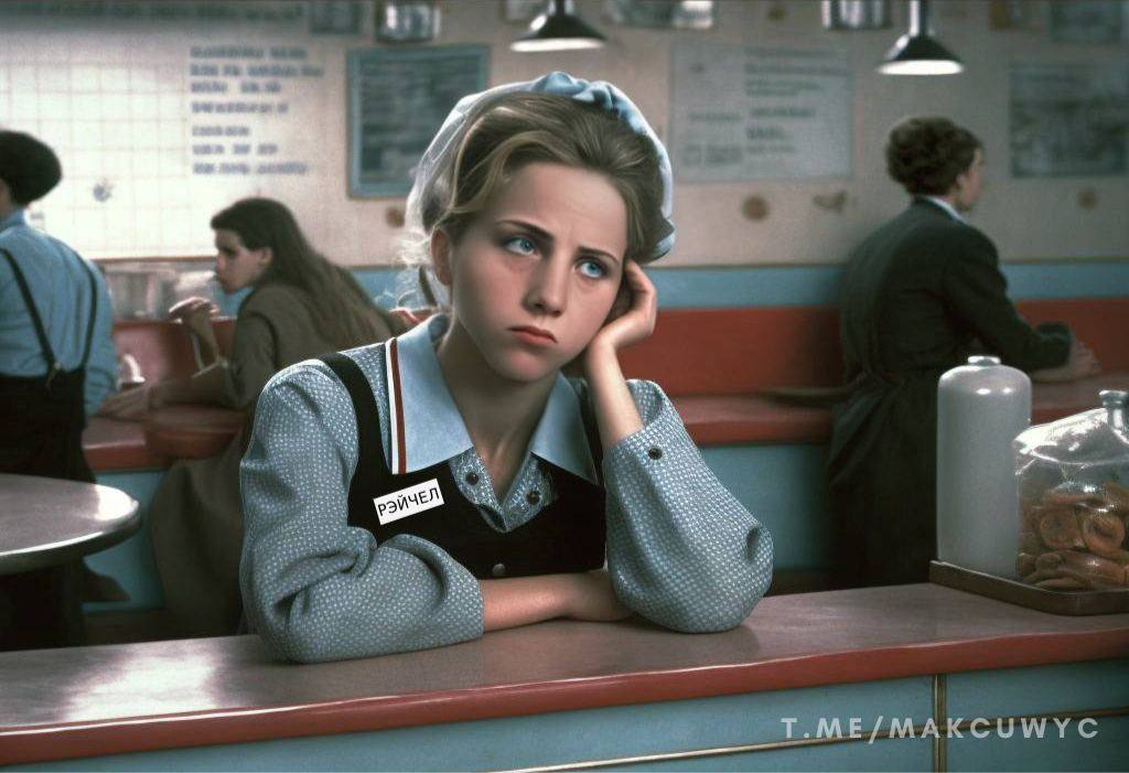 Сбежала от богатого возлюбленного и, по мнению Midjourney, стала буфетчицей.