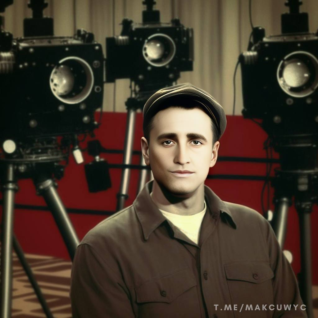 По сюжету Росс – самый умный и самый застенчивый персонаж, который, тем не менее, успел трижды жениться и развестись. Нейросеть увидела его, как серьезного и немного грустного ученого из СССР.