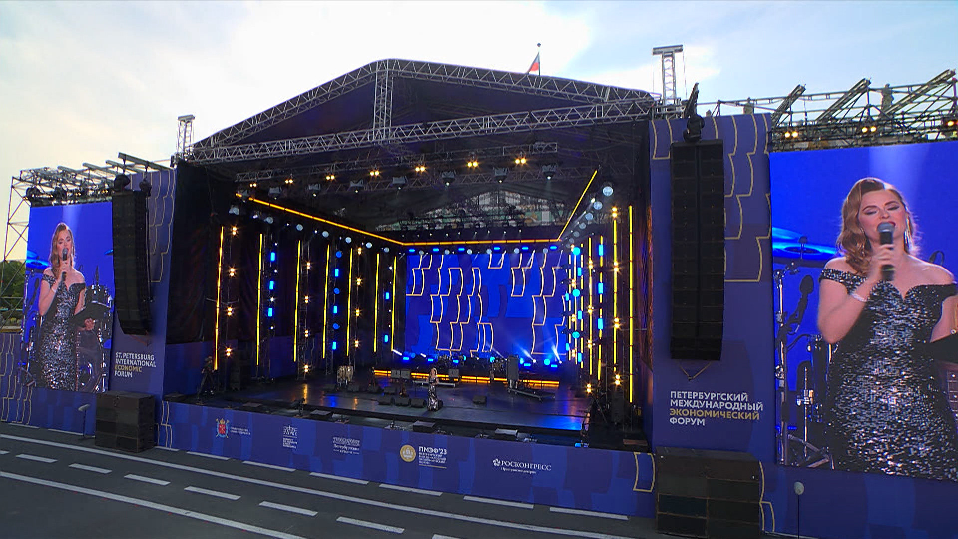 Культурная программа Петербургского Международного экономического форума накануне продолжилась концертом на Дворцовой площади.