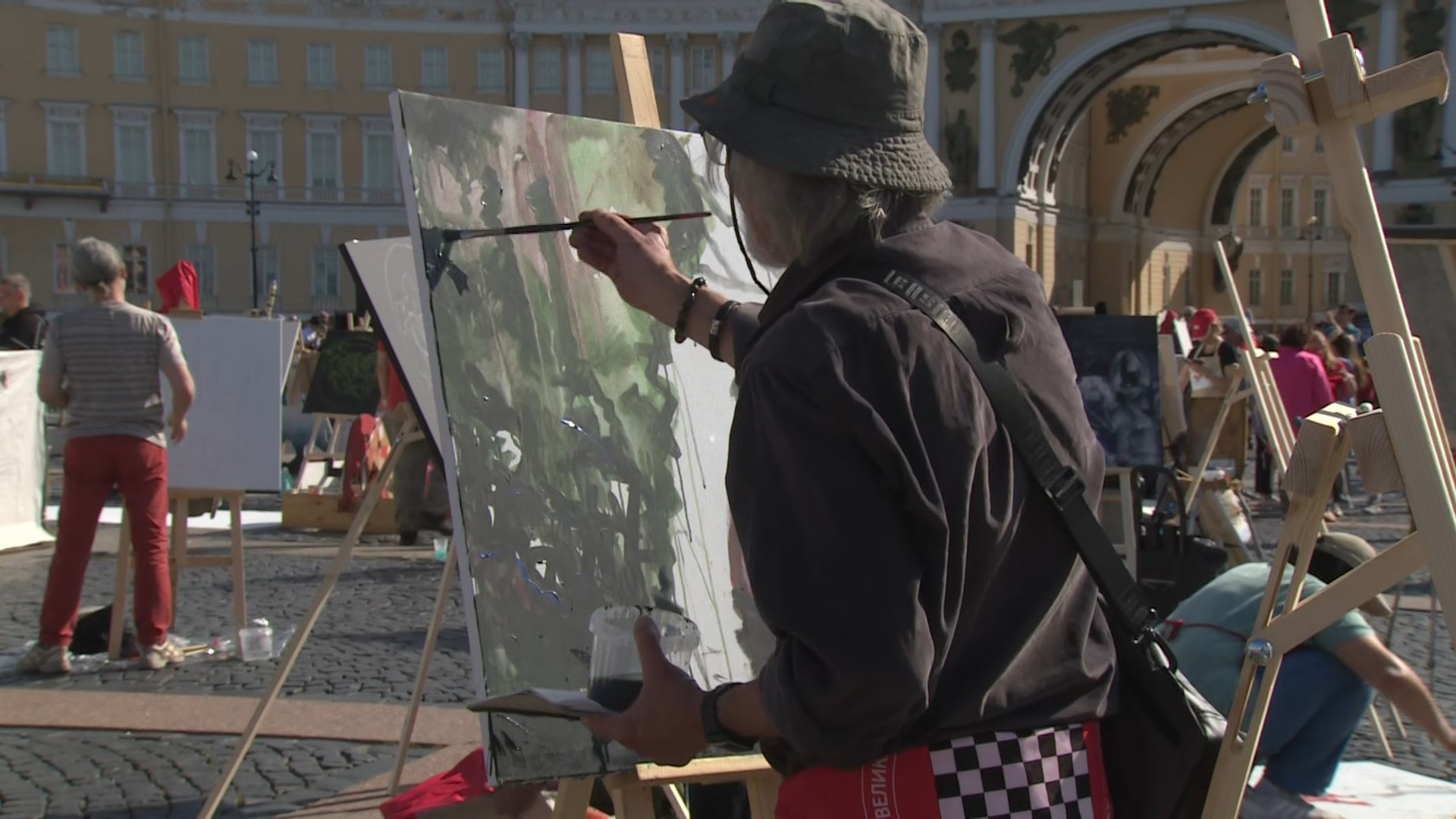 Художники из разных уголков России сегодня вышли на Дворцовую площадь – там проходит большой пленэр международного фестиваля искусств «Мастер-класс».