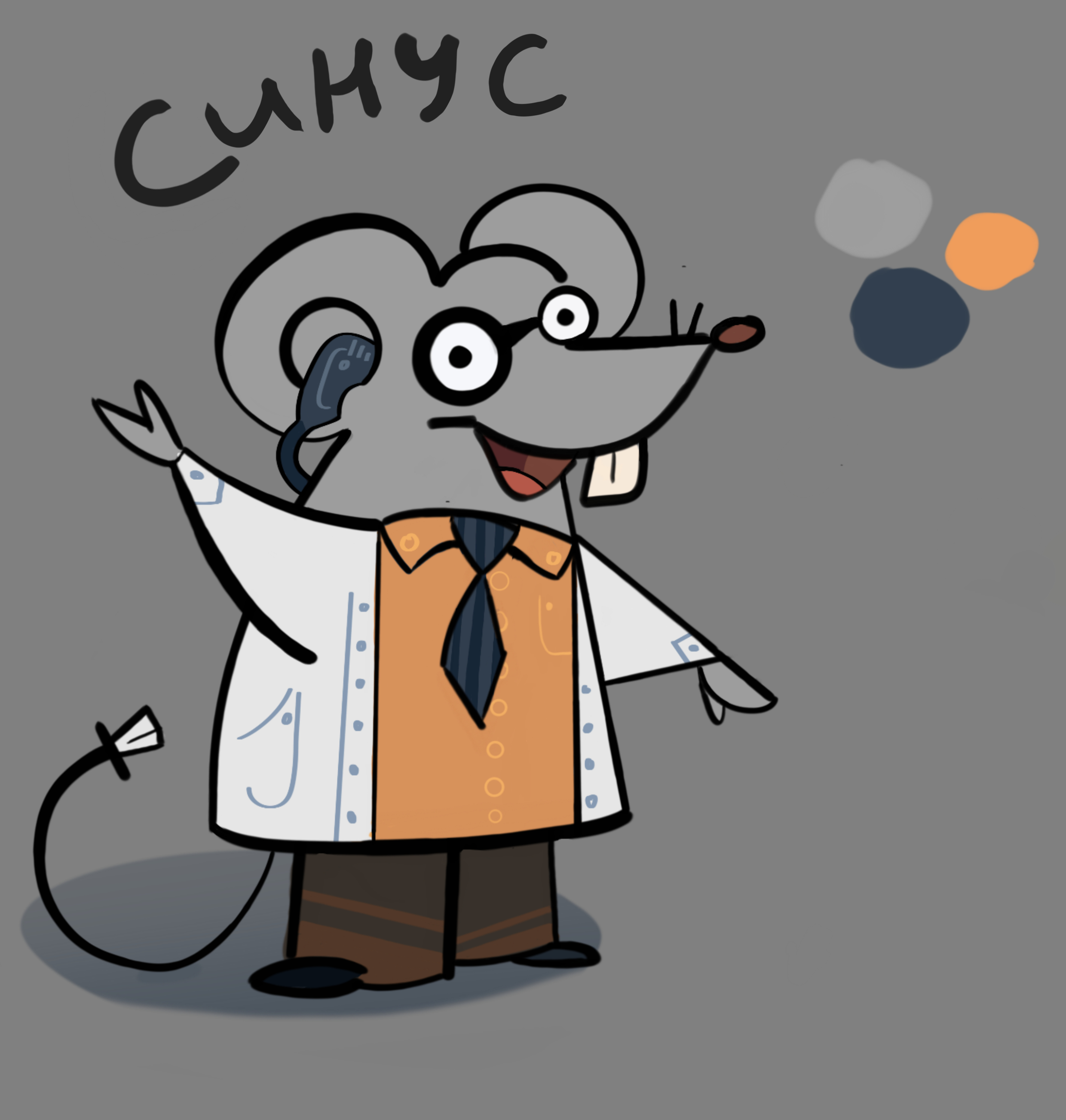 Мышь по имени Синус. Раньше он был с канцелярскими крысами, затем по карьерной лестнице дослужился до лабораторной мыши, а потом переквалифицировался в компьютерную мышь. Синус — талисман науки РФ, потому что мыши и крысы фигурируют в разных научных сферах, тем самым их объединяя. В информационных технологиях — компьютерная мышь, в химии — лабораторные мышь и крыса и даже в математике — биссектриса, это крыса, которая бегает по углам и делит угол пополам. С точки зрения биологии мыши и крысы не уступают другим животным, а в каких-то аспектах даже опережают. И, конечно, именно благодаря этим животным мы имеем безопасные лекарства, которые спасают жизни!