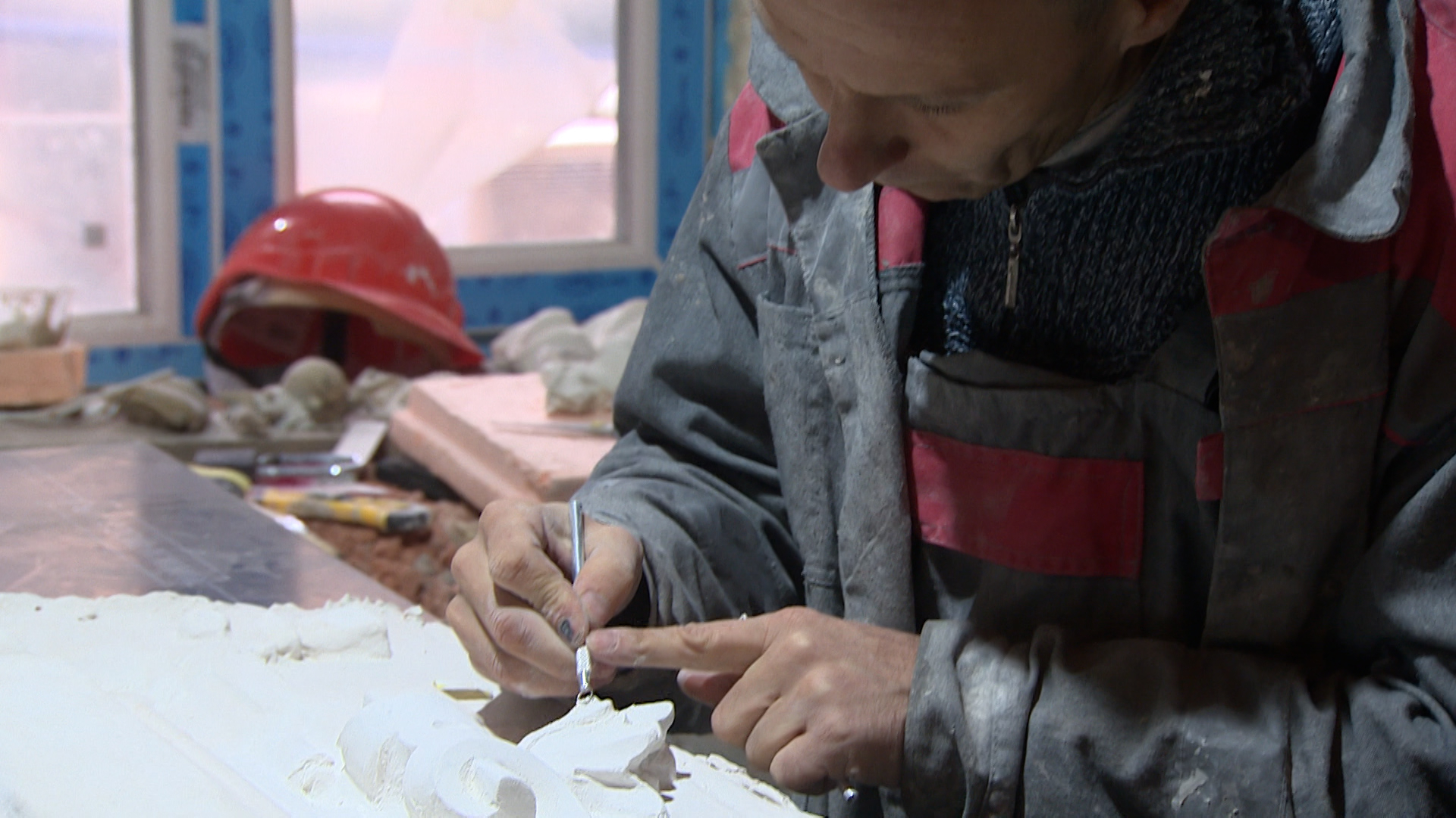«Все эти прожилки видите? Иначе их нам не прочистить. Гипс имеет достаточную плотность. И здесь специальная сталь. Отточена идеально, как бритва. Позволяет сделать любую моделировку, острие формы, сделать углубление», – отметил скульптор-реставратор Александр Арсентьев.