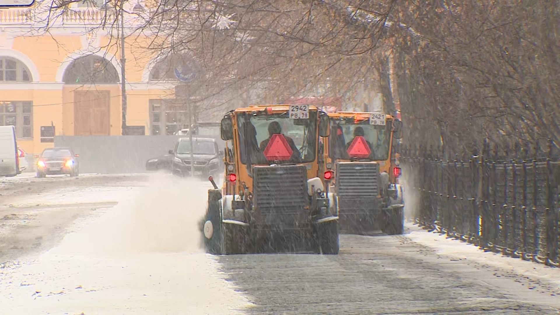 Рано утром ход уборки в Невском и Красногвардейском районах проинспектировали вице-губернатор Евгений Разумишкин и глава комитета по благоустройству Василий Пониделко. Особое внимание они уделили превентивной обработке, уборке тротуаров и остановок общественного транспорта.
