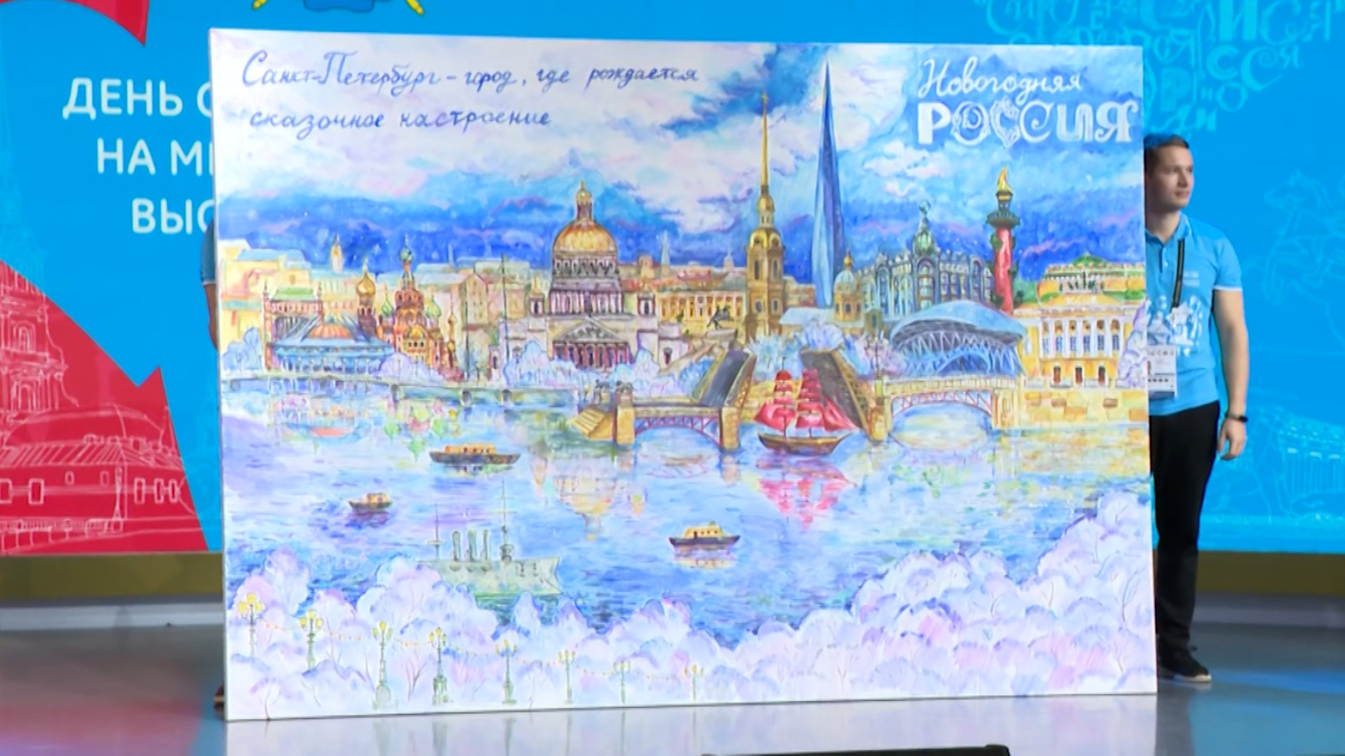 Ровно в полдень здесь, на ВДНХ на выставке «Россия» губернатор Санкт-Петербурга Александр Беглов дал старт дню Санкт-Петербурга. Прошла эта встреча очень тепло. Гости пели гимн Санкт-Петербурга, Александр Беглов подарил выставке большое масштабное полотно современного города на Неве, которую три дня рисовали все гости выставки «Россия»
