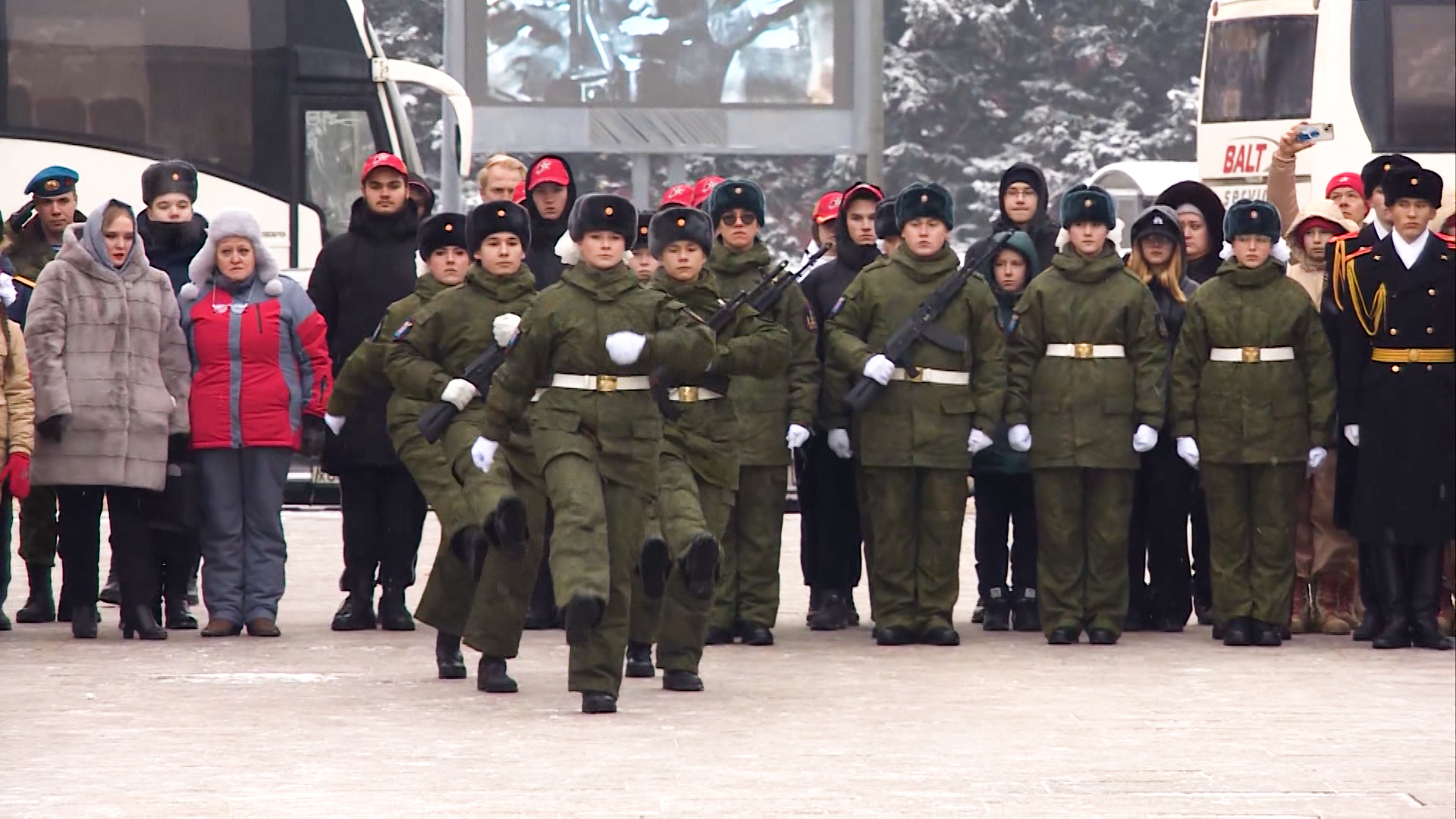 На Пискаревском кладбище состоялась торжественная церемония открытия постоянно действующего молодёжного поста. С этого дня служба почётных караулов будет проходить у Вечного огня и монумента «Мать-Родина».
