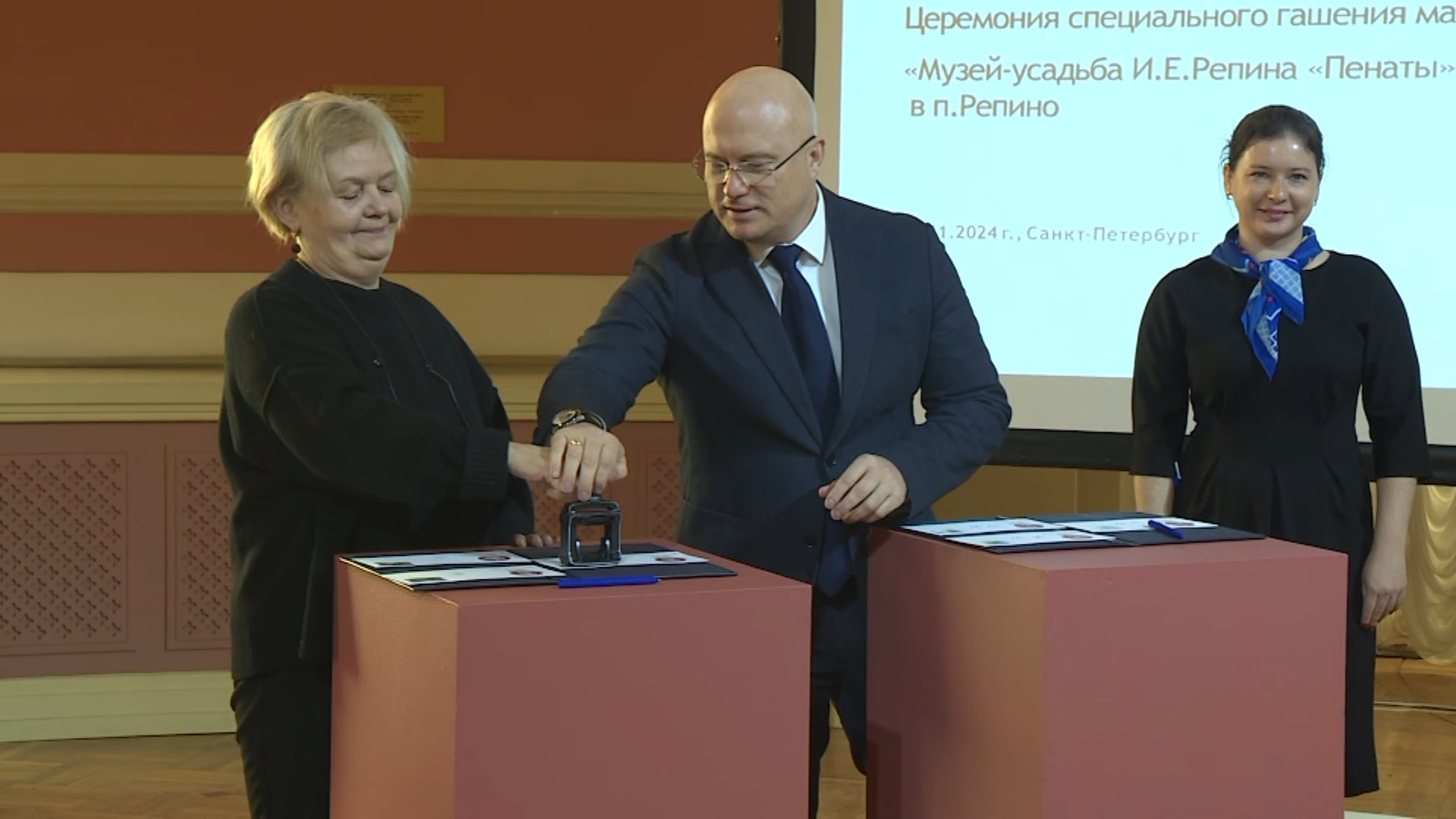 Оттиски специальным штемпелем на конвертах поставили директор Макрорегиона Северо-Запад «Почты России» Александр Вакуленко и заведующая Музеем-усадьбой художника Елена Гладкова.