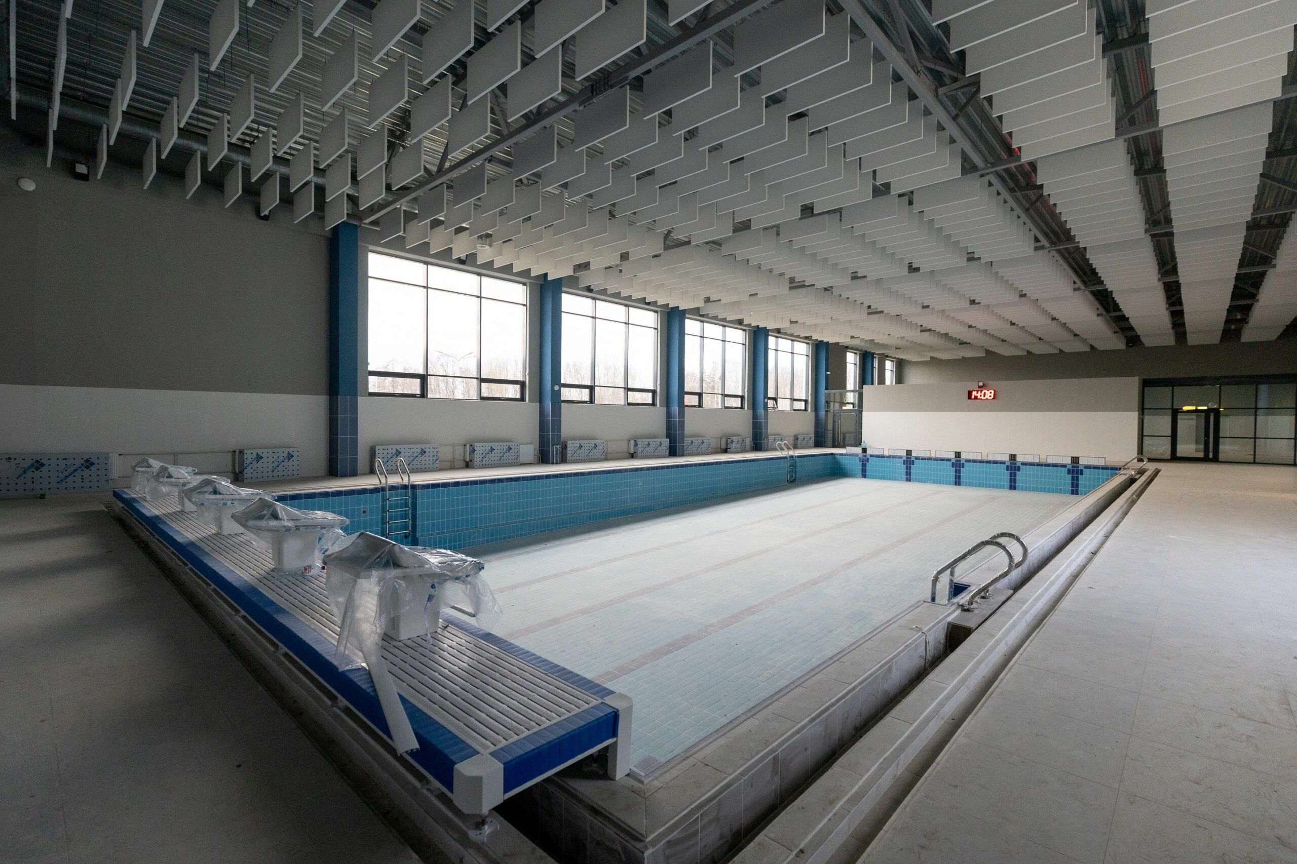 Для занятий спортом обустроены три физкультурных зала и два бассейна, а во дворе — футбольное поле с беговыми дорожками, волейбольная и баскетбольная площадки. По соседству создана комфортная зона для отдыха.