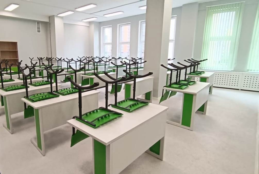 Необходимое оборудование и инвентарь для школы, в том числе мебель и оргтехнику, приобрел и установил инвестор. Это станки для мастерских: заточной, токарно-винторезный, фрезерный. А также необходимые приборы и оборудование для кухни и столовой, среди них – жарочные шкафы, тестомесильная машина, миксер, картофелечистка, хлеборезка. Для спортивных залов приобретены гимнастические стенки и брусья. Для актового зала – прожекторы, акустические системы, микрофоны, микшерный пульт и многое другое.
