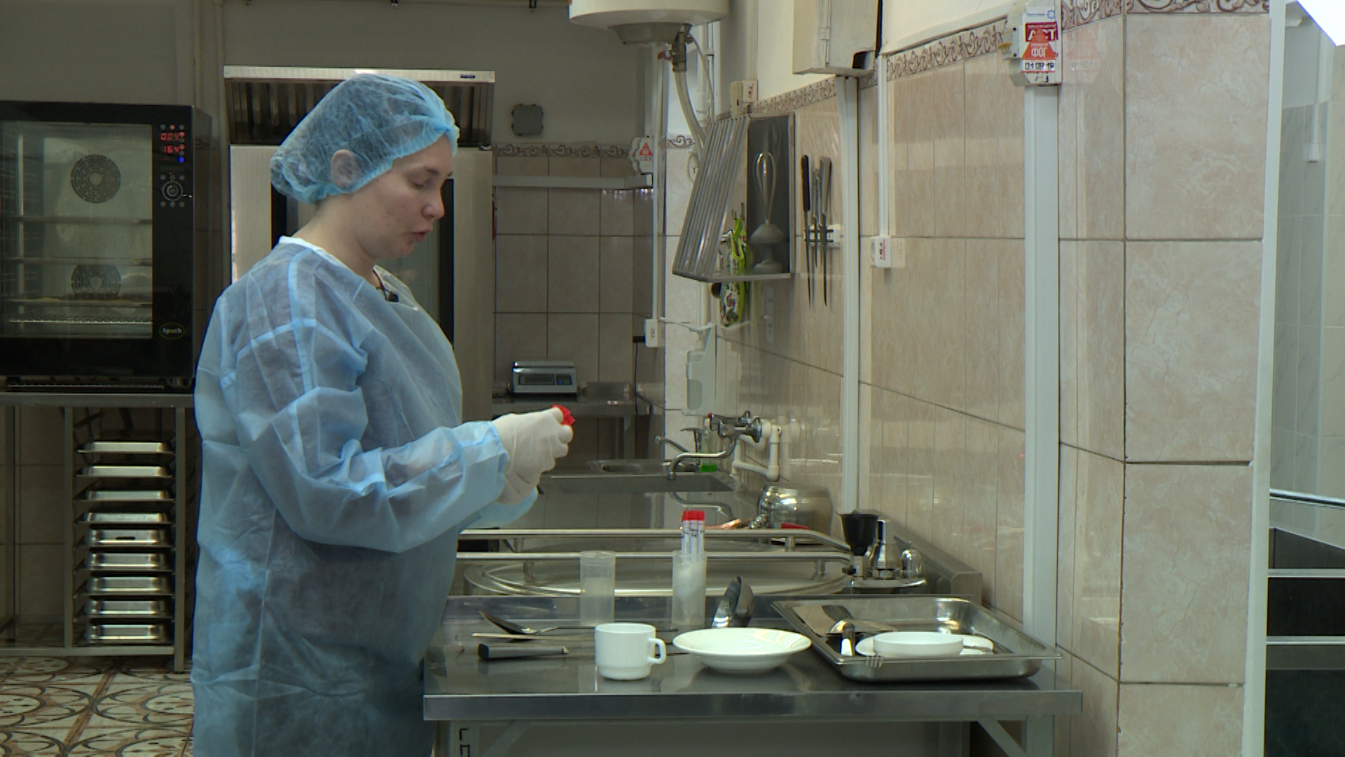 На обед спешат не только школьники, но и сотрудники лаборатории Управления социального питания. В специальных халатах — на чистую зону кухни. Смывы берут и с кухонного оборудования, и с посуды, рук и даже одежды сотрудников.