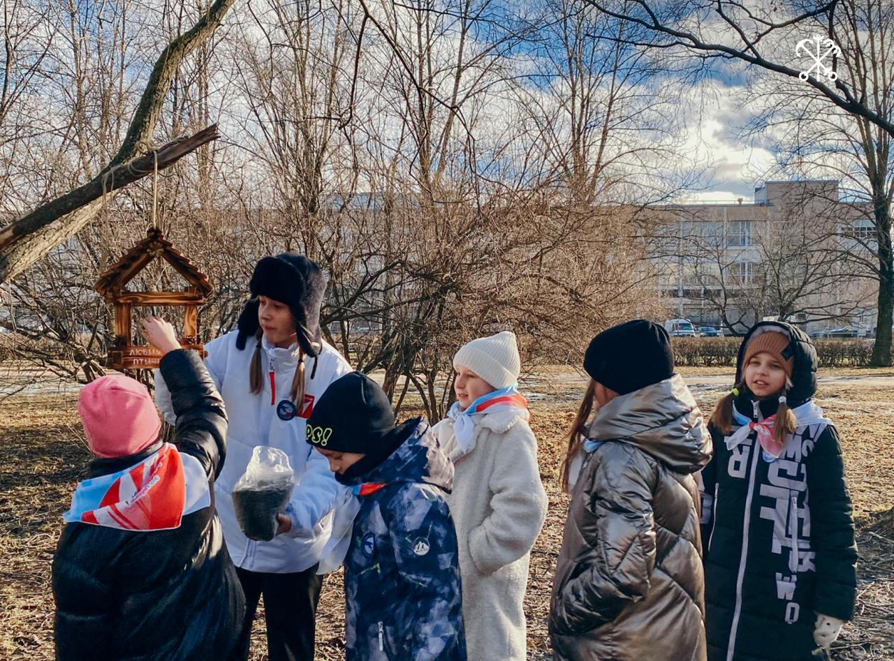 Ребята Всероссийского проекта «Орлята России» из 508 школы Московского района развесили новые кормушки для птиц.