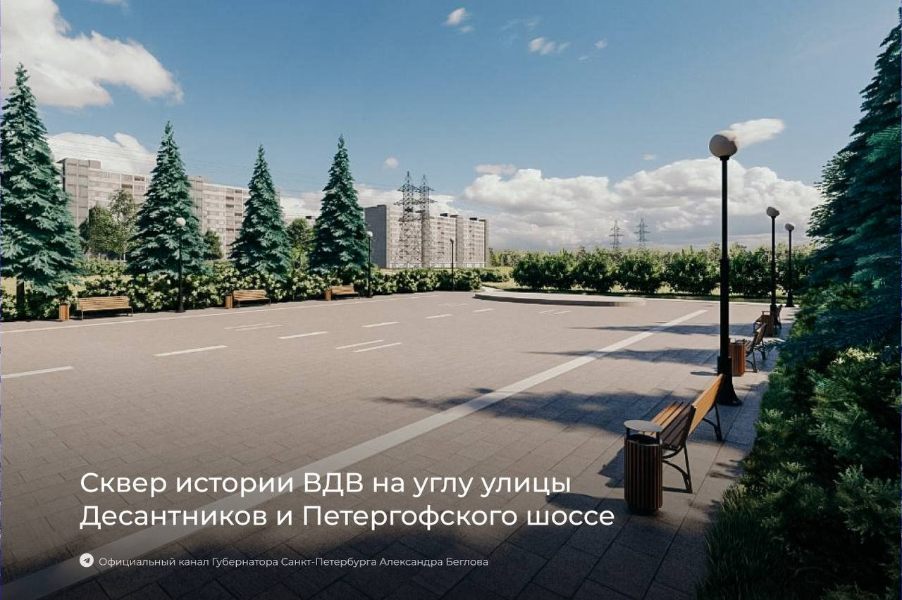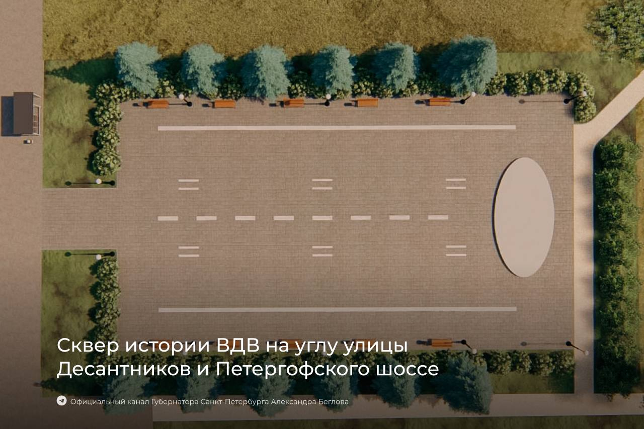 Губернатор Санкт-Петербурга Александр Беглов показал, как будет выглядеть сквер истории ВДВ, который начали строить в Красносельском районе.
