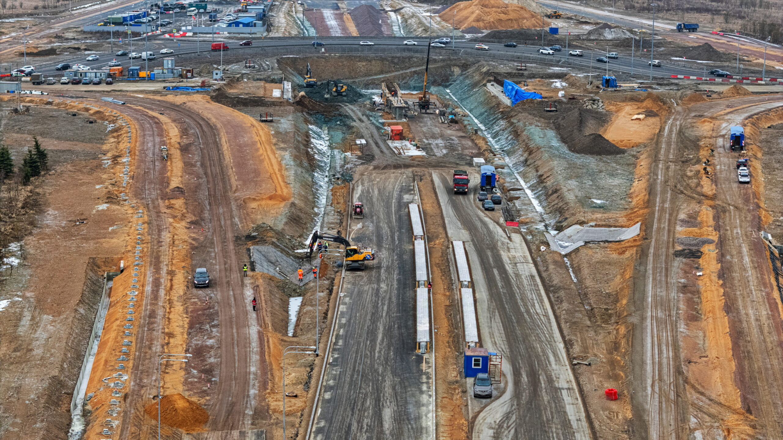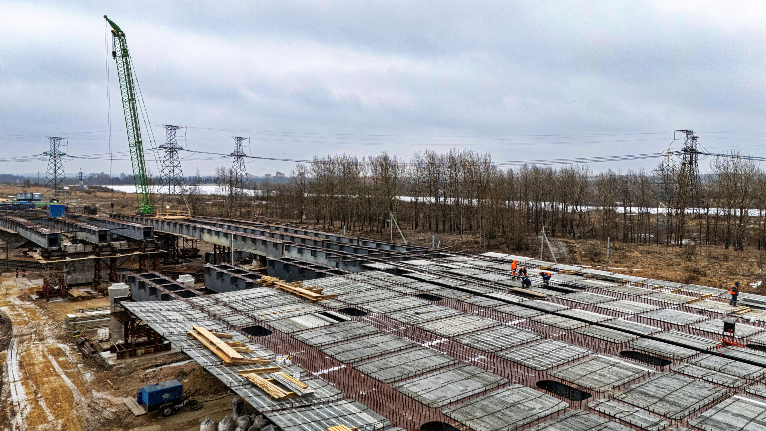 Ускоренными темпами сооружаются три разноуровневые развязки в составе ЮШМ. Так, уже на 60% готов путепровод в створе Петербургского шоссе. Здесь заканчивается устройство фундаментов опор, в начале апреля специалисты приступят к монтажу полусотни 28-метровых балок. В планах – завершить монтаж пролетного строения в сентябре, уложить асфальт и открыть рабочее движение по путепроводу до конца текущего года.