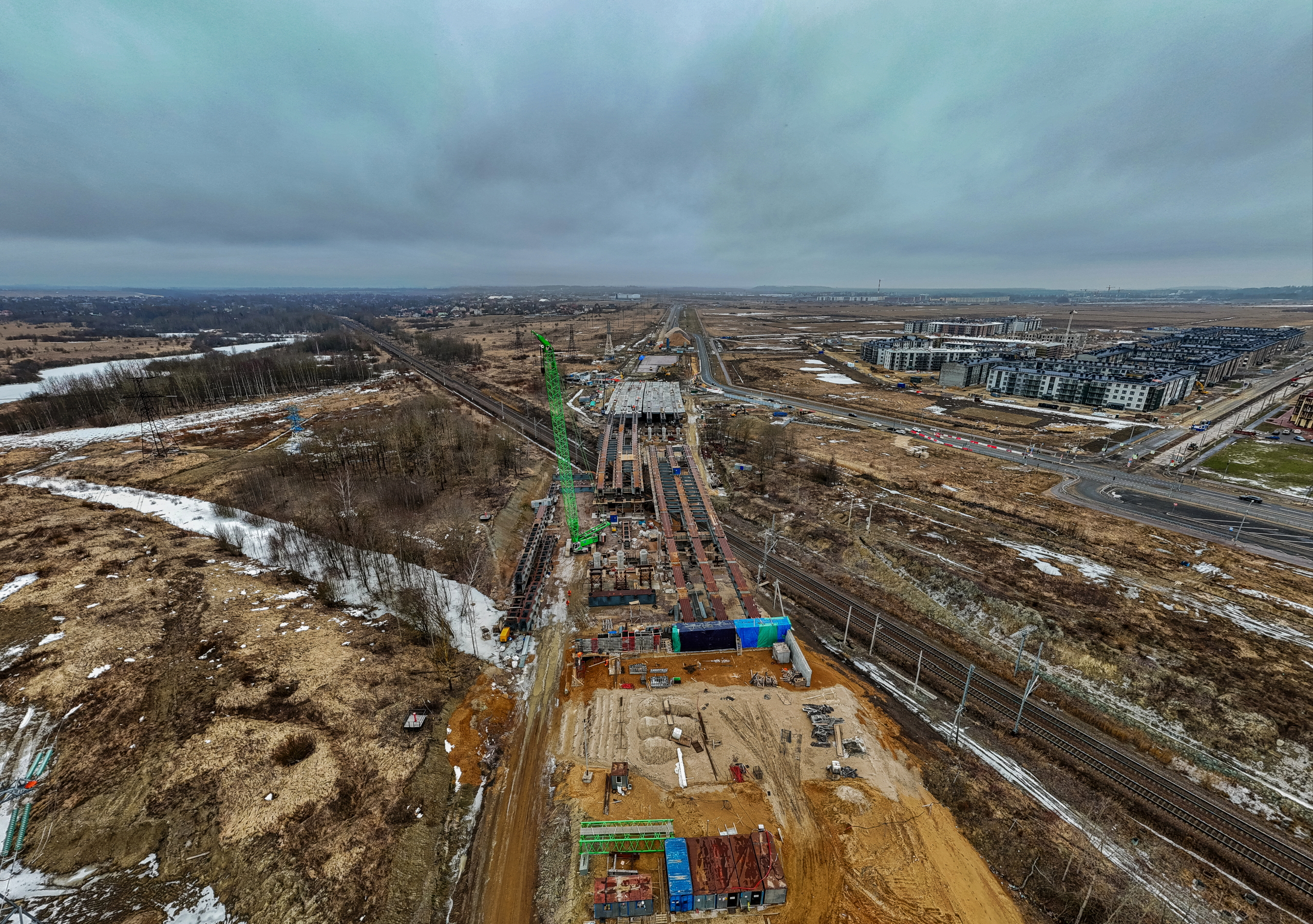 Завершаются работы по усилению основания дорожного полотна рядом с путепроводом через железнодорожные пути Балтийского направления и улицей Сарицкой. Из 788 грунтоцементных свай готовы 717. Высокие темпы строительства стали возможны благодаря технологии струйной цементации грунтов. Она позволяет монтировать в среднем 10 свай за день. Сам путепровод над путями Балтийского направления готов на 65%.