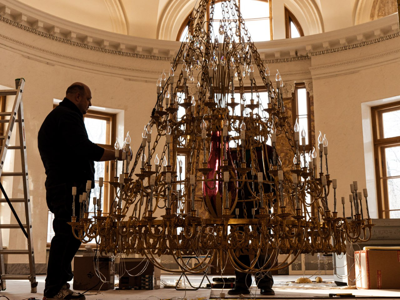 В парадные залы Александровского дворца после реставрации вернулись три люстры конца XVIII века.