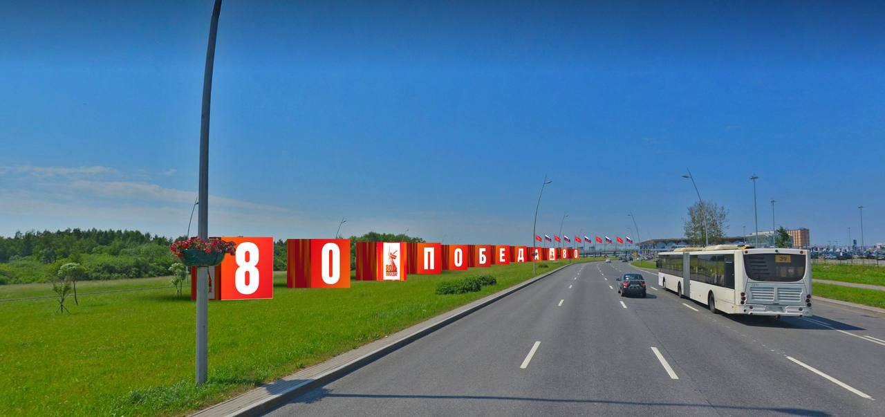Дорогу в аэропорт «Пулково», Кронштадтскую и Северную площади, пересечение улицы Народной и проспекта Большевиков тоже украсят новые декоративные композиции. На Пулковском шоссе появится слово «ПОБЕДА» из двенадцати кубов.