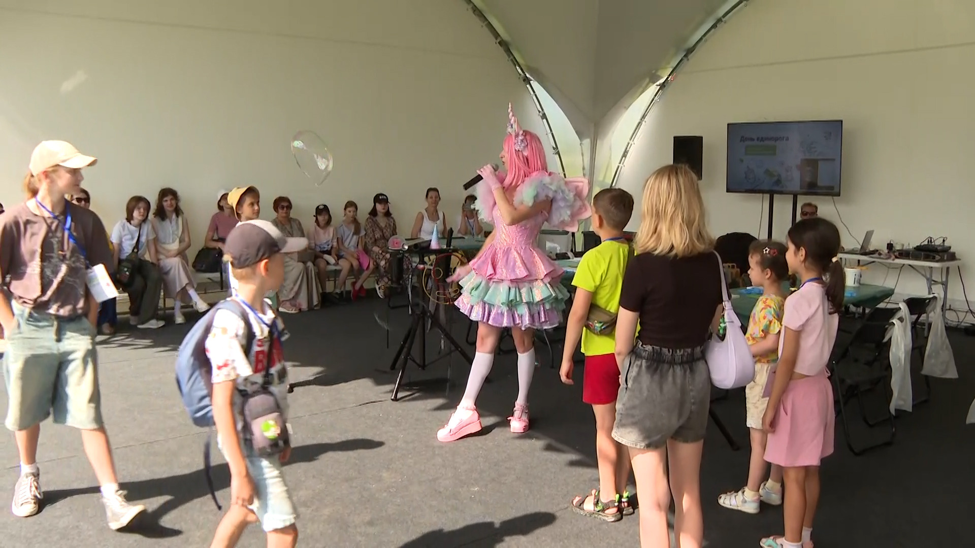 В инклюзивной зоне «День единорога» юные гости фестиваля знакомятся с настоящей феей. Участники танцуют в окружении сотни маленьких шариков, любуются гигантскими мыльными облаками и узнают, как выглядит мороженое в сказочной стране.