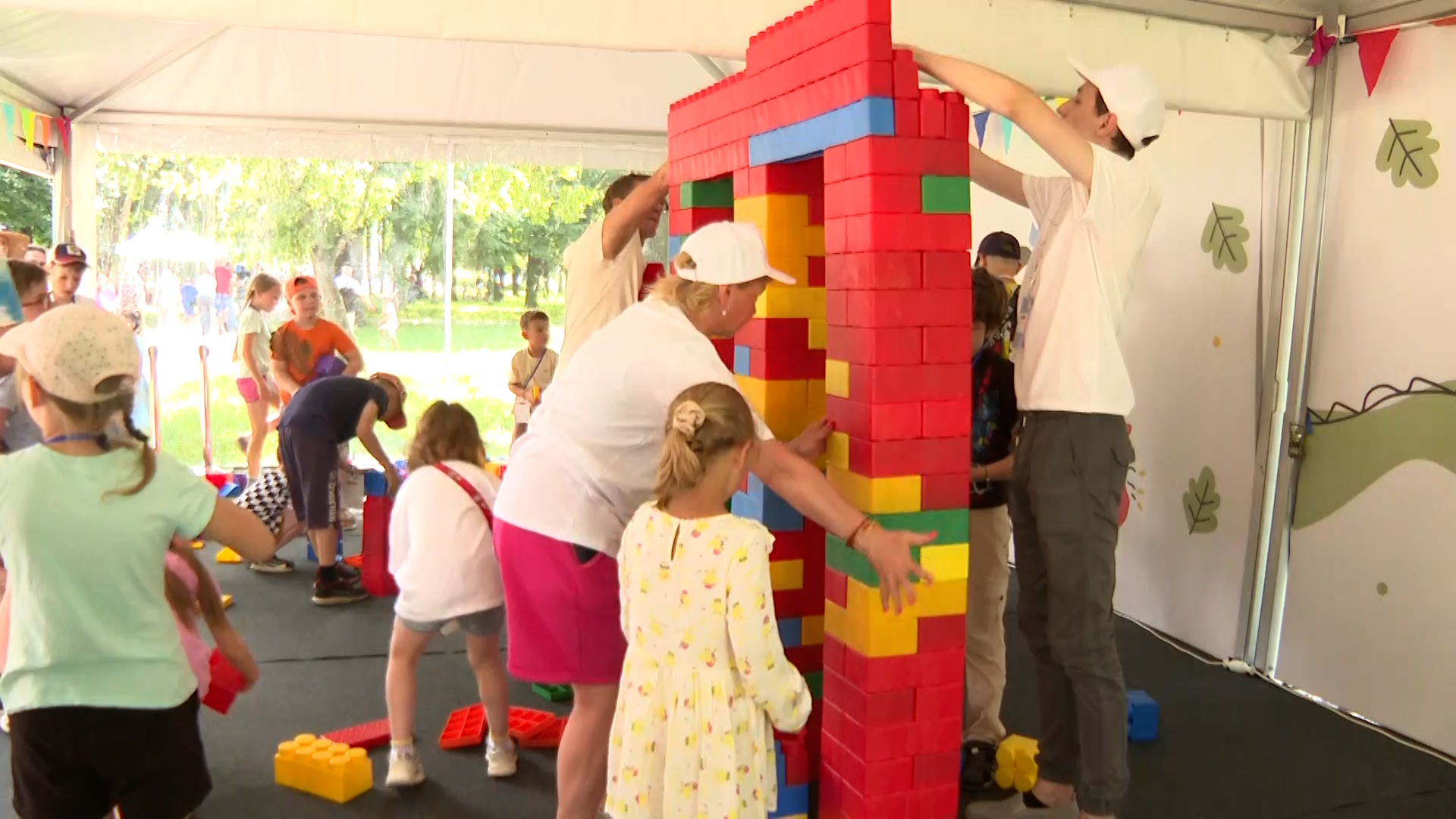 На Большом семейном фестивале работала площадка «Мосты Петербурга», где ребята самостоятельно сооружали модель Большого Смоленского моста из гигантских кубиков и узнавали интересные факты о городских переправах.