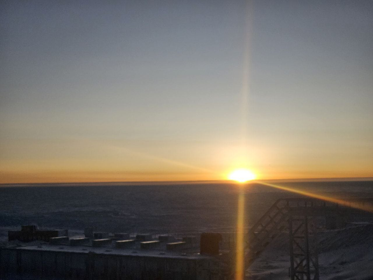 Пресс-служба Арктической и антарктической научно-исследовательского института (ААНИИ) сообщает, что после четырех месяцев непрерывной тьмы над северной станцией вновь зажглись первые солнечные лучи.