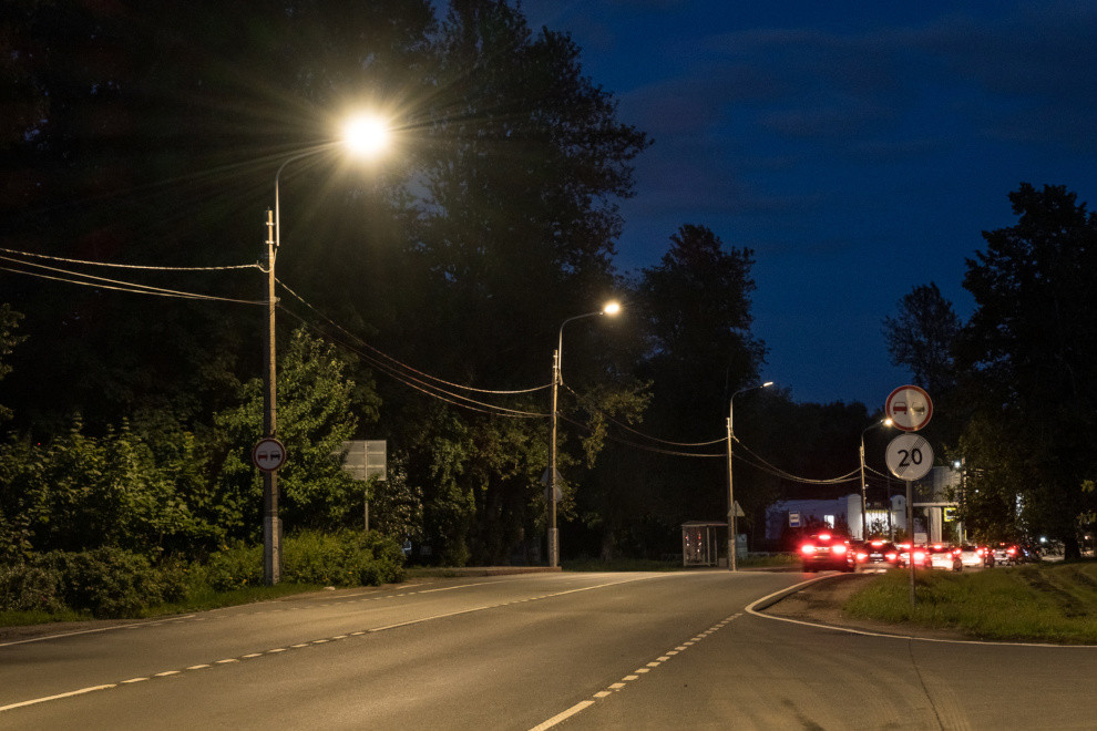 Доля светодиодных светильников в системе наружного освещения Петродворцового района сегодня составляет 86%. В 2025 году обновили 1259 фонарей — на 10% больше запланированного объема.