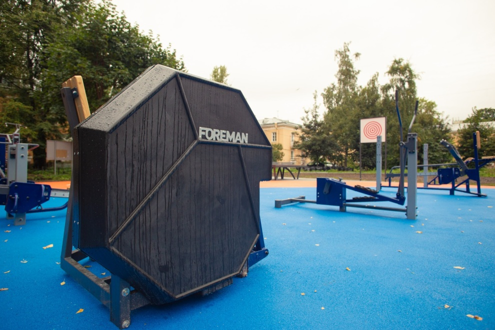 На площадке уложили шумопоглощающее покрытие, разместили разнообразные уличные тренажеры и новые теннисные столы. Разметка для прыжков в длину с места и для метания мяча сделает возможной сдачу нормативов ГТО. На территории вокруг площадки засеян газон и установлены малые архитектурные формы.
