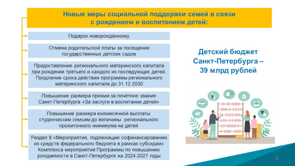В Петербурге создано 10 «Кванториумов» и 33 центра цифрового образования «Инфинити», в новом учебном году открылось более 600 предпрофессиональных классов в школах. Петербург стал первым регионом, где с нового учебного года запущена программа раннего естественно-научного образования. 100 детских садов и 144 школы с начальными классами оснащены современными средствами обучения и воспитания. 404 школы обновили оборудование для обучения предметам «Основы безопасности и защиты Родины» и «Труд», приобретены дополнительные материалы и пособия для кабинетов физики, химии, биологии.