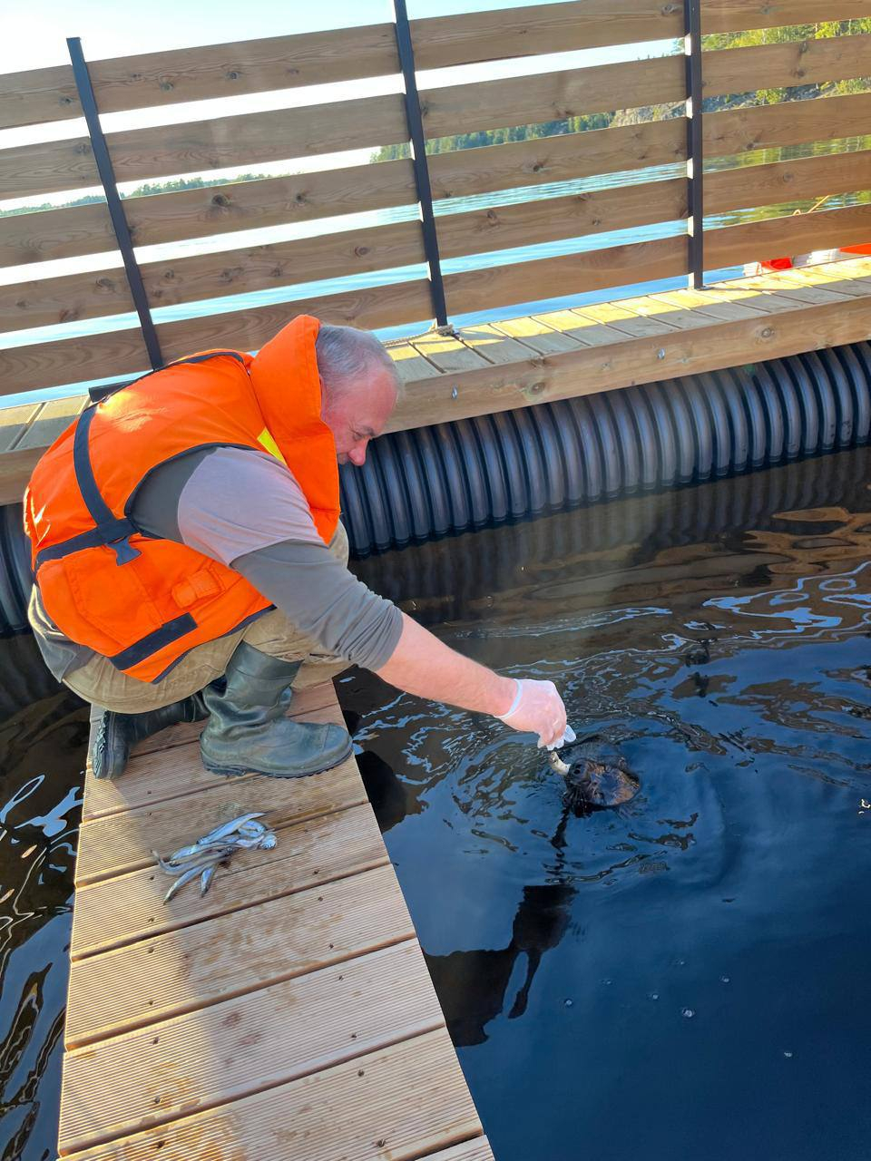 Плавучий вольер для Крошика и Шлиссика соорудили, чтобы посмотреть, смогут ли тюлени, несколько лет назад спасённые малышами и выросшие в центре помощи ластоногим, адаптироваться к естественной среде. Однажды они уже отказались расставаться с людьми, так же вышло и на этот раз.
