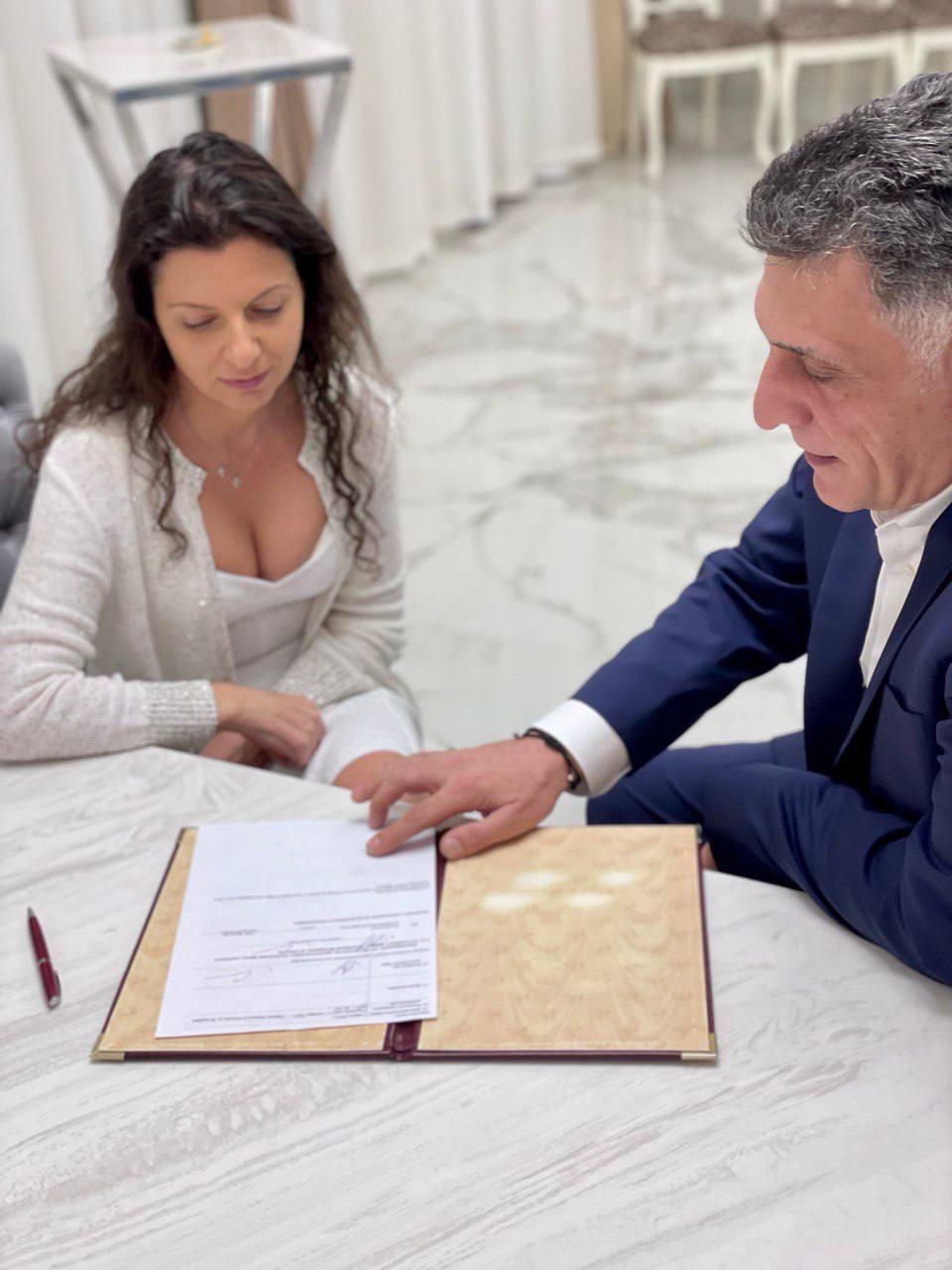 После нескольких предложений руки и сердца, Тигран Кеосаян убедил Маргариту выйти за него замуж. Он аргументировал своё желание тем, что подвергся санкциям из-за связи с ней, а она даже не является его законной супругой. Под влиянием этих слов, а также традиционного армянского воспитания, журналистка дала своё согласие на брак.