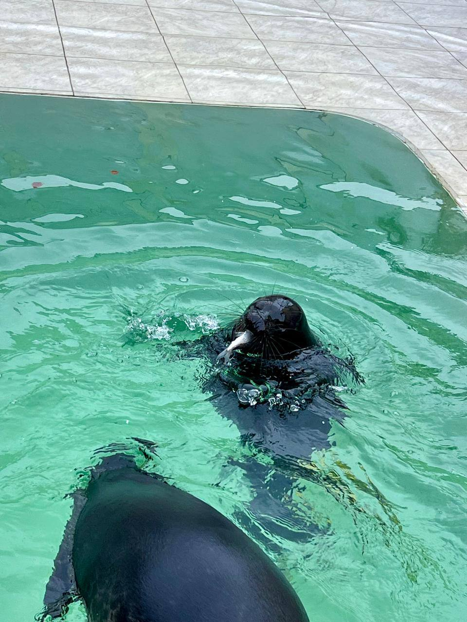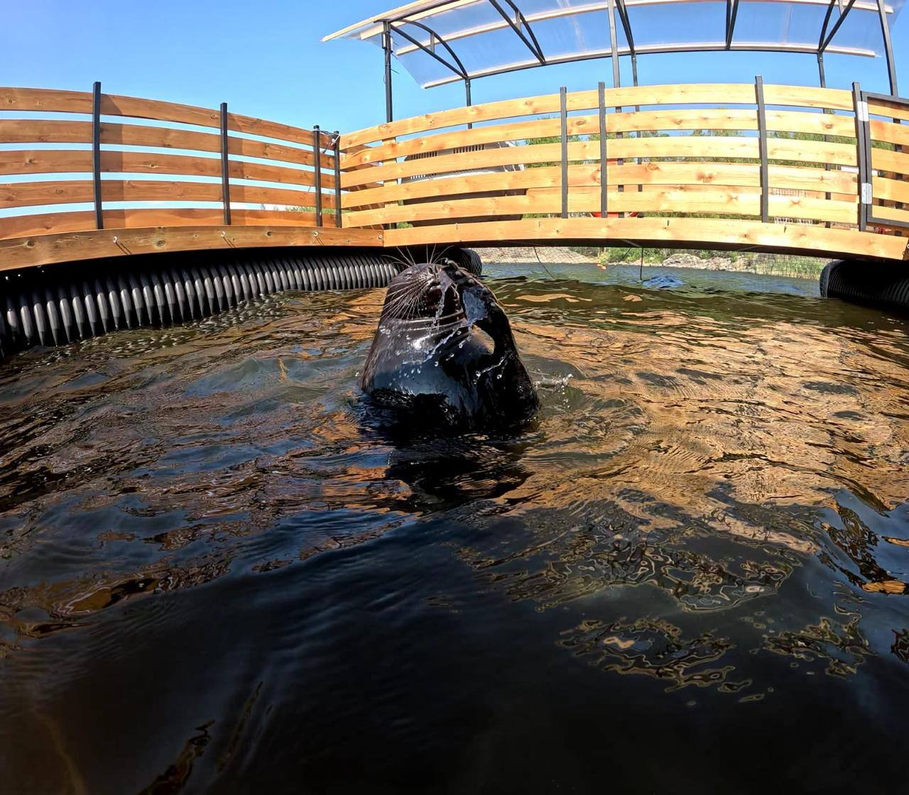 Крошик всего однажды выполз на деревянную часть вольера, почти все время каникул ластоногий проводил в воде, предпочитая практиковаться в нырянии.