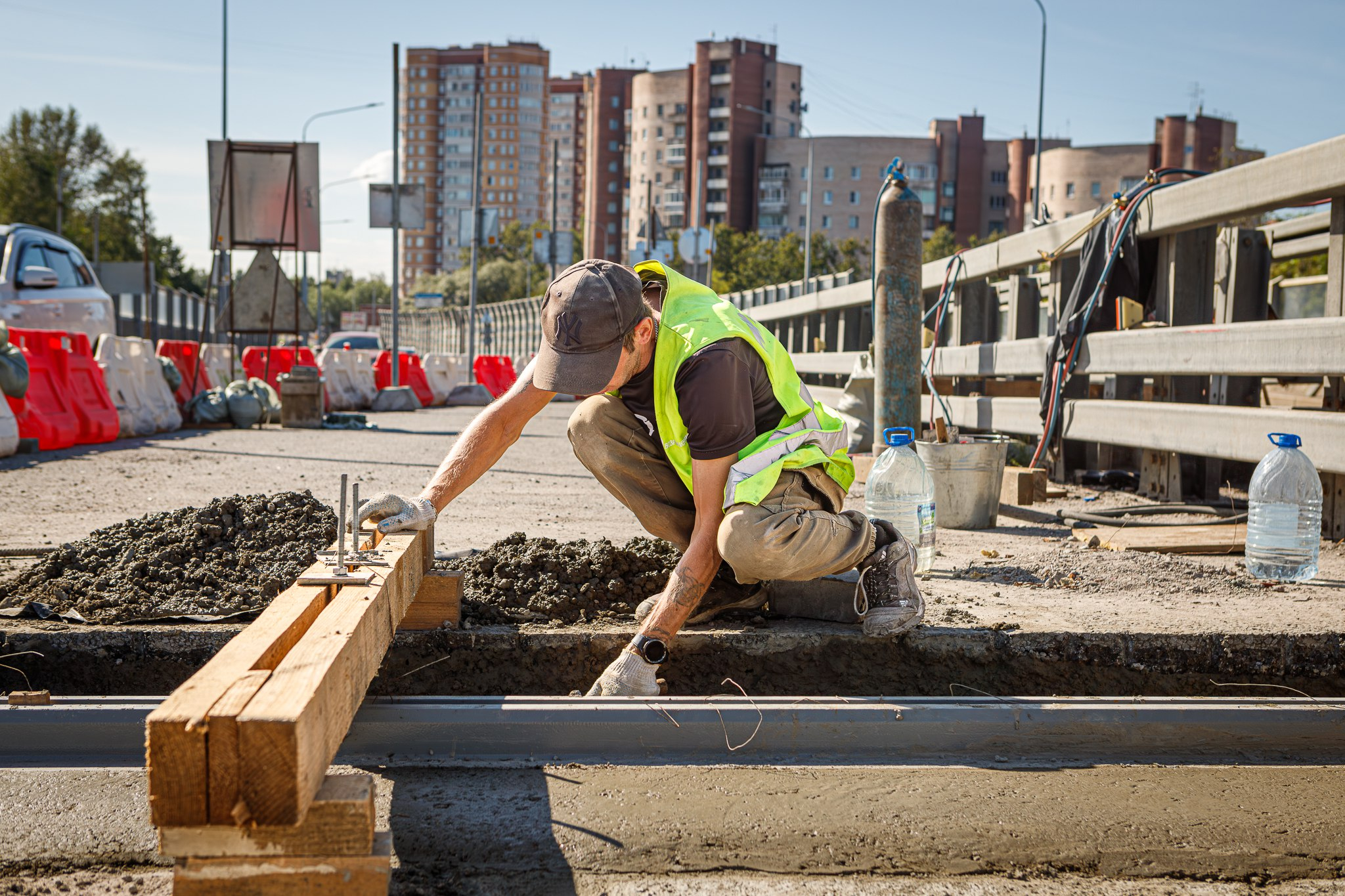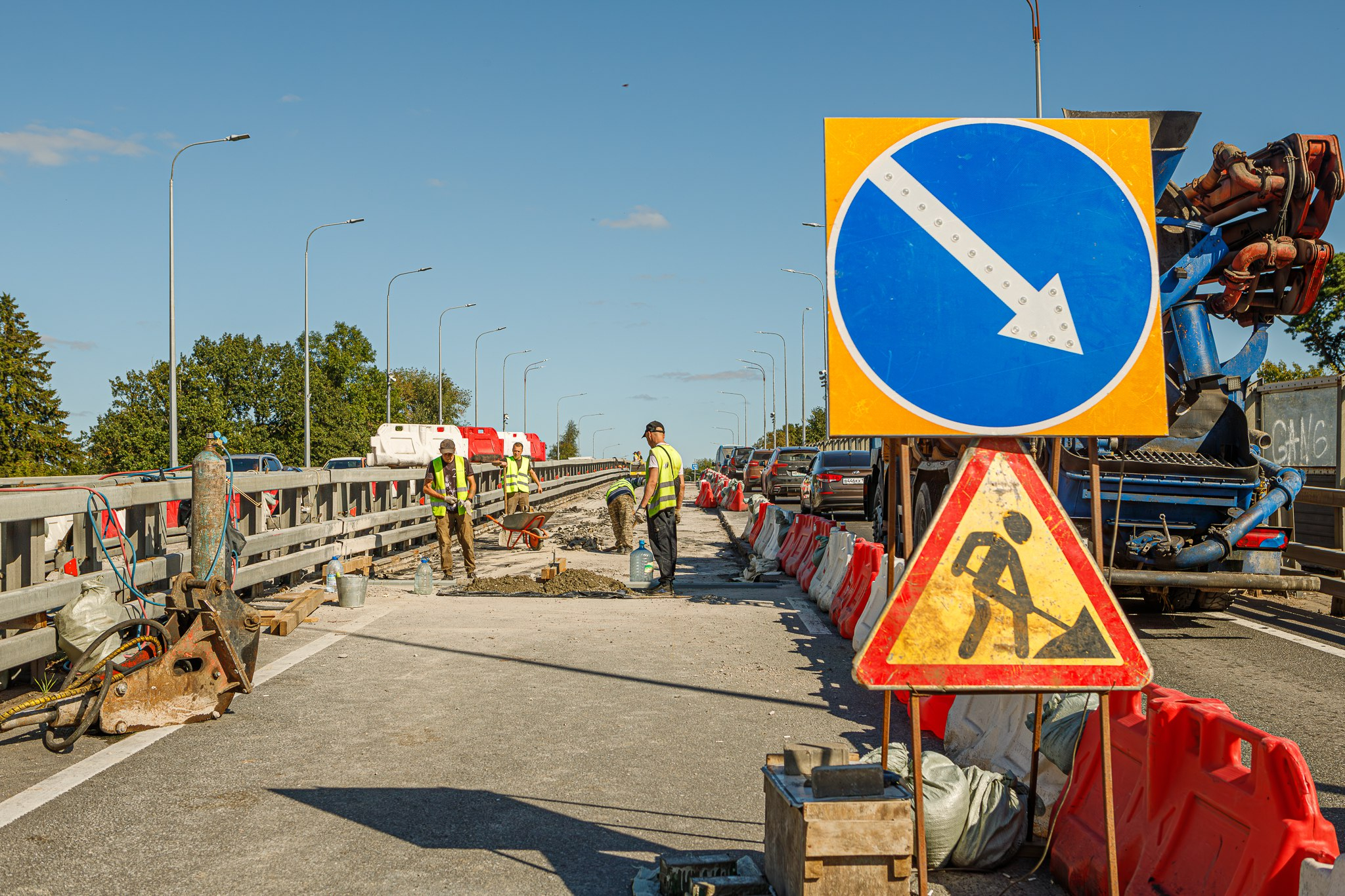 Сейчас специалисты риступили к третьему этапу работ на внутренних полосах проезжей части. Там готовят основание для гидроизоляции и устраивают деформационные швы. Помимо защитного слоя гидроизоляции из литого асфальта, на путепроводе будет уложено новое двухслойное дорожное покрытие. На внешних полосах основные работы уже завершены, и по ним открыто движение.