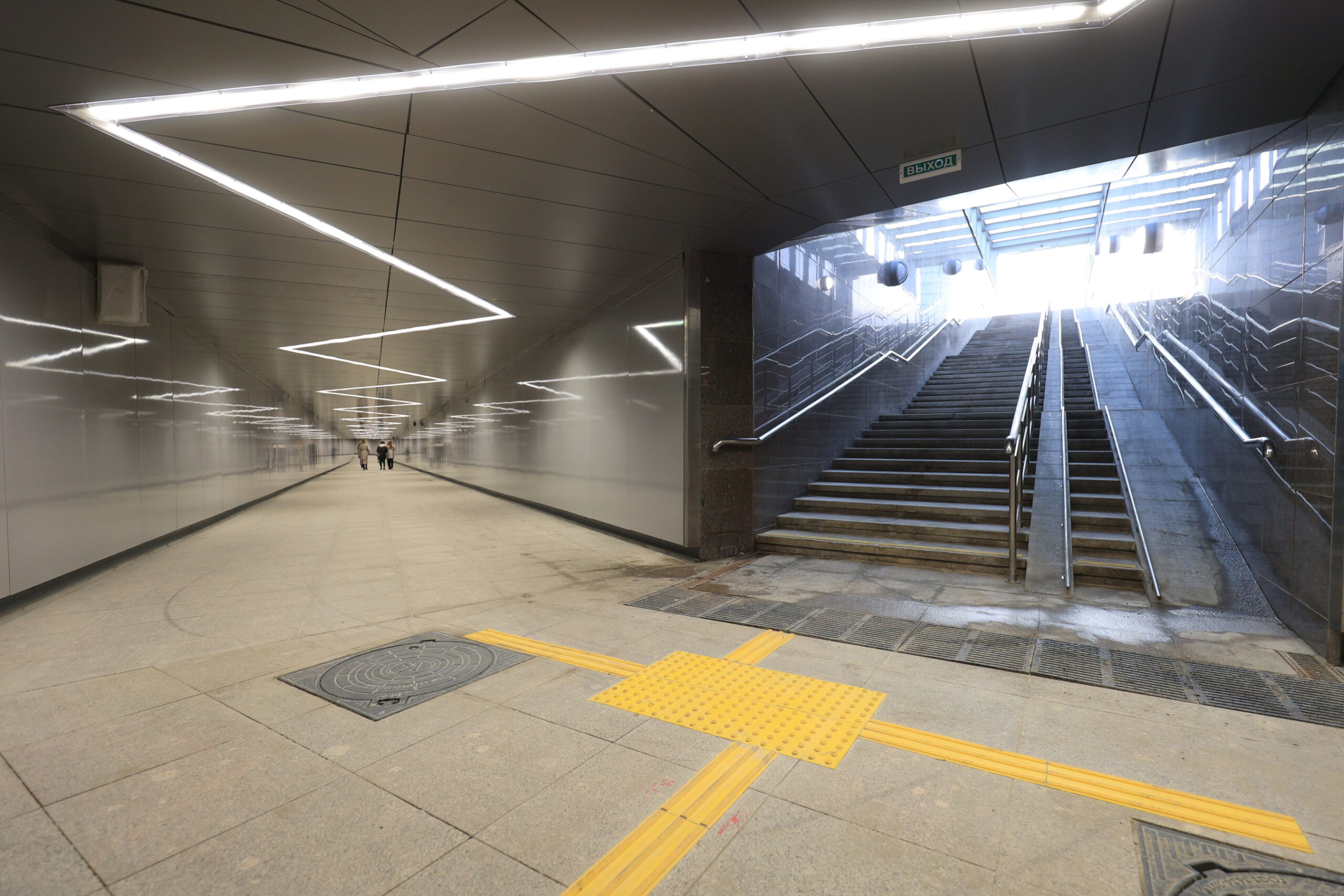 Подземный пешеходный переход оборудован 5 лифтами для людей с ограничениями по здоровью. Пол тоннеля облицован гранитом, стены – металлокерамическими панелями. Проектом также предусмотрена система обогрева ступеней и пандусов, которая предотвратит образование наледи.