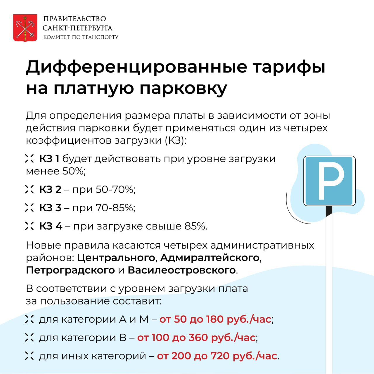 Стоимость часа парковки легкового автомобиля составит 100, 200, 280 или 360 рублей — в зависимости от зоны. Стоимость закреплена и не будет меняться — вне зависимости от востребованности конкретного участка.