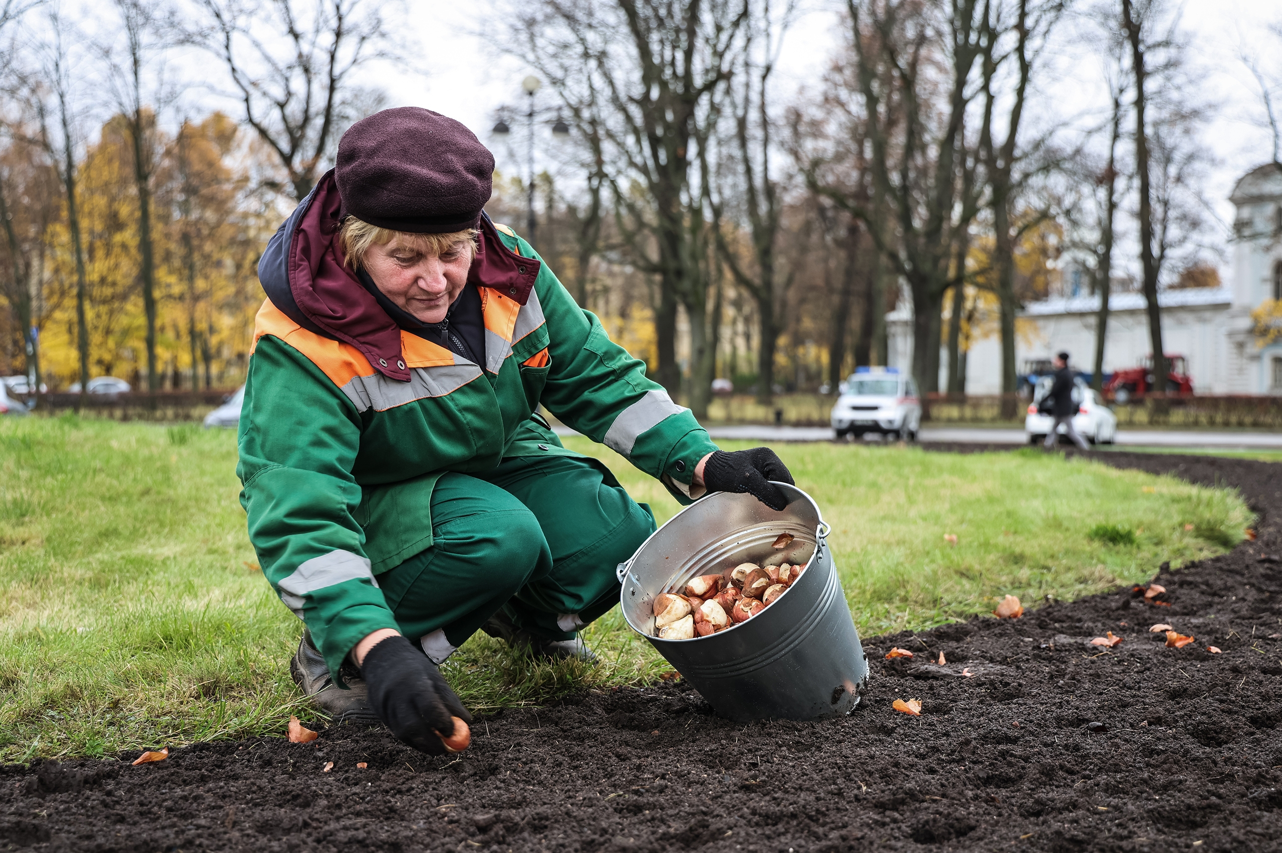 В Петербурге началась масштабная осенняя посадка луковичных растений, которые украсят город следующей весной. Специалисты садово-парковых хозяйств приступили к созданию будущих цветников на самых парадных площадках города.