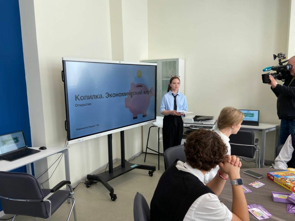 Для создания нового пространства были переоборудованы школьный класс и рекреация. Здесь будут проходить лекции и квизы, игры по финансовой грамотности. Современное оборудование для записи подкастов об экономике и бизнесе поможет ребятам получать необходимые знания в удобном для их возраста формате.