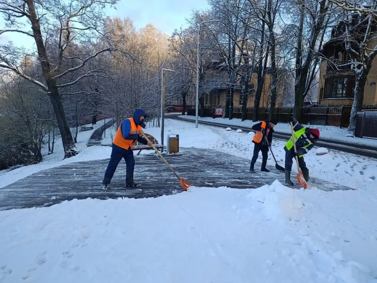 Много снега выпало в удаленных от центра районах. В частности, садовники трудились в Зеленогорске в скверах Юность и 8 марта, в Сестрорецке приводили в порядок улицу Володарского, сквер Парадный, сквер Вилима Геннина, сквер Петра Великого.