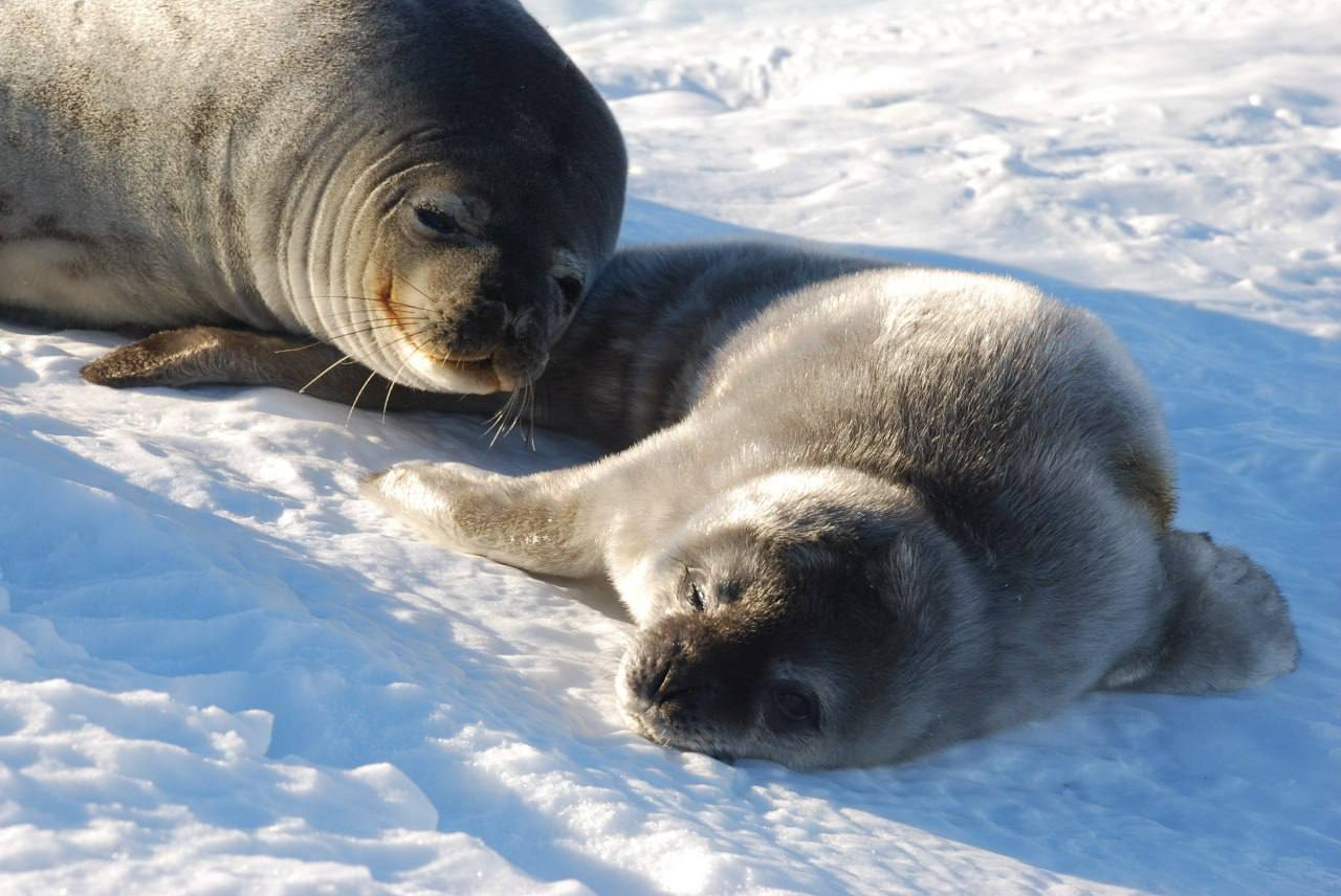 В пресс-службе ААНИИ поделились кадрами, на которых запечатлены животные и их детёныши — мамы и малыши в естественной природе.