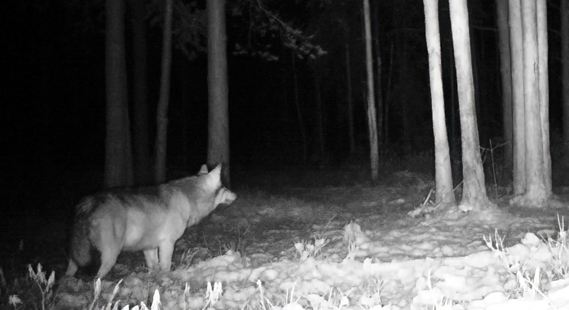 На видео попался взрослый матерый волк, который в декабре, вопреки обычаю, держится не в стае, а один. Но больше всего зрителей поразил его внешний вид: у хищника был раздут живот, что явно указывало на недавнюю и очень удачную охоту.