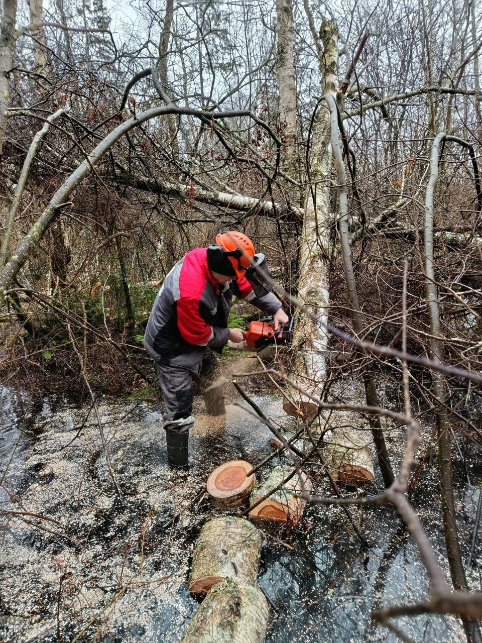 В настоящее время проводятся работы по очистке территории в 23-м квартале Сестрорецкого лесничества и в 9-м квартале, 13-м выделе Песочинского лесничества. Там сложилась достаточно сложная обстановка из-за затопления лесосеки, однако это не стало препятствием для специалистов в их работе.