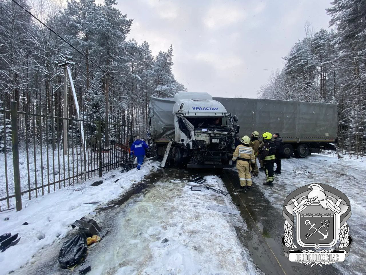Сегодня, 23 декабря, в 14:34, на дороге во Всеволожском районе Ленобласти, ведущей через деревню Энколово, произошло серьезное дорожно-транспортное происшествие. Столкнулись грузовые автомобили «Ивеко» и «Мерседес», а также легковой автомобиль «Киа Рио».