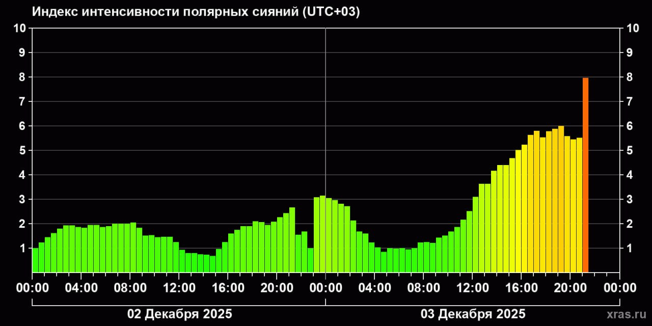 Как сообщает пресс-служба лаборатории солнечной астрономии ИКИ РАН, наблюдения полярных сияний возможны в северных и северо-западных регионах страны.