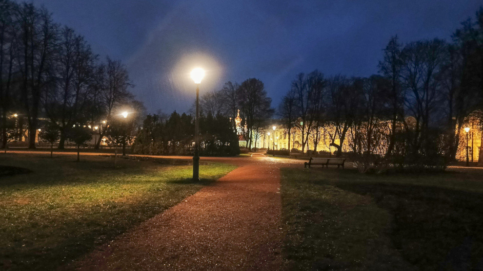В Петродворцовом районе завершено строительство новой системы наружного освещения в сквере Знаменова, расположенном в непосредственной близости от Государственного музея-заповедника «Петергоф».