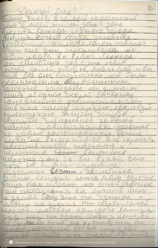 Бухгалтер завода Людмила Рейтер обращалась к неизвестному бойцу: «Пишу тебе в самый радостный день моей жизни – день прорыва блокады родного города Ленина. Ночью, когда диктор возвестил, я плакала от счастья… Вам, дорогие бойцы, Вам обязаны мы этой радостью… Не думай, боец, что ты одинок и забыт на фронте. Ты согрет самой теплой любовью каждого ленинградца».
