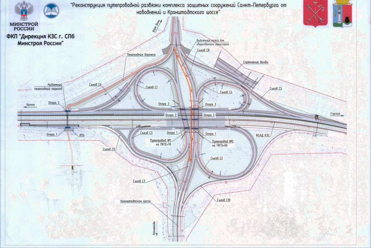 Дирекция информирует, что в рамках реконструкции транспортной развязки КАД и Кронштадтского шоссе рабочее движение организовано по всем десяти съездам.