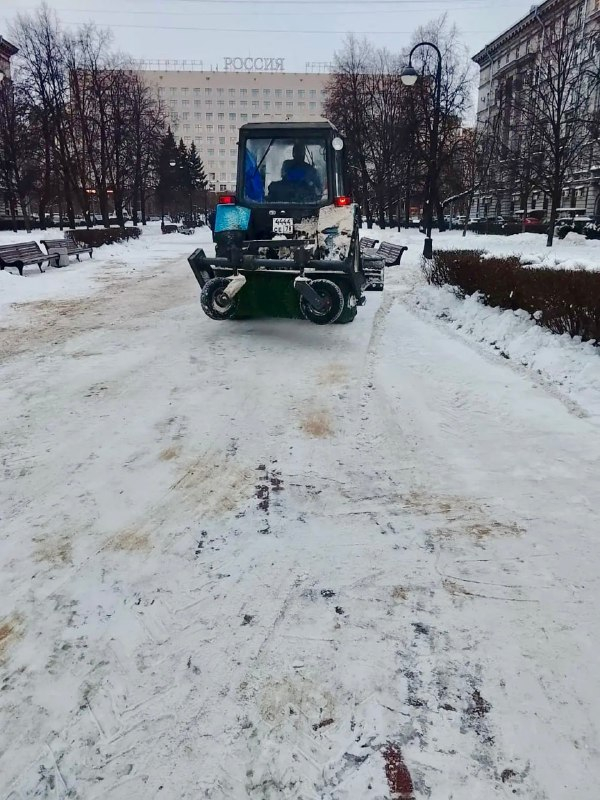 В пресс-службе комитета подчеркнули: «В особенно популярных местах, где за день успевают не раз пройти сотни и сотни пар ног, снег быстро утаптывается, и при перепадах температур может образоваться наледь — ее удаляют механическим способом».