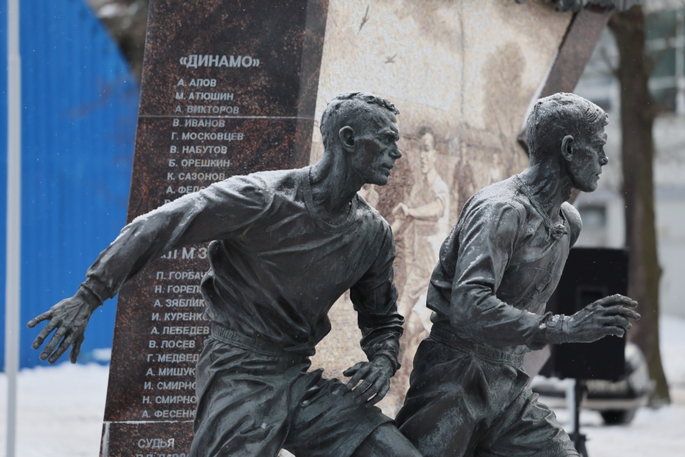 Памятник участникам легендарного блокадного футбольного матча на стадионе «Динамо» был открыт 31 мая 2012 года — в честь 70-летия легендарной встречи. Автор — народный художник России Салават Щербаков.