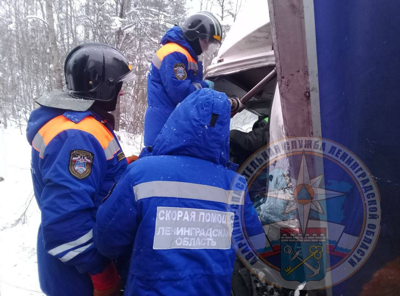 На место аварии незамедлительно выехала дежурная смена поисково‑спасательного отряда из Шлиссельбурга. Водитель грузовика «КамАЗ» не мог самостоятельно выбраться из машины после аварии. Спасатели использовали специальный гидравлический инструмент, с помощью которого его достали из кабины автомобиля. Мужчину передали бригаде скорой помощи — сейчас водитель госпитализирован в центральную районную больницу города Шлиссельбурга.