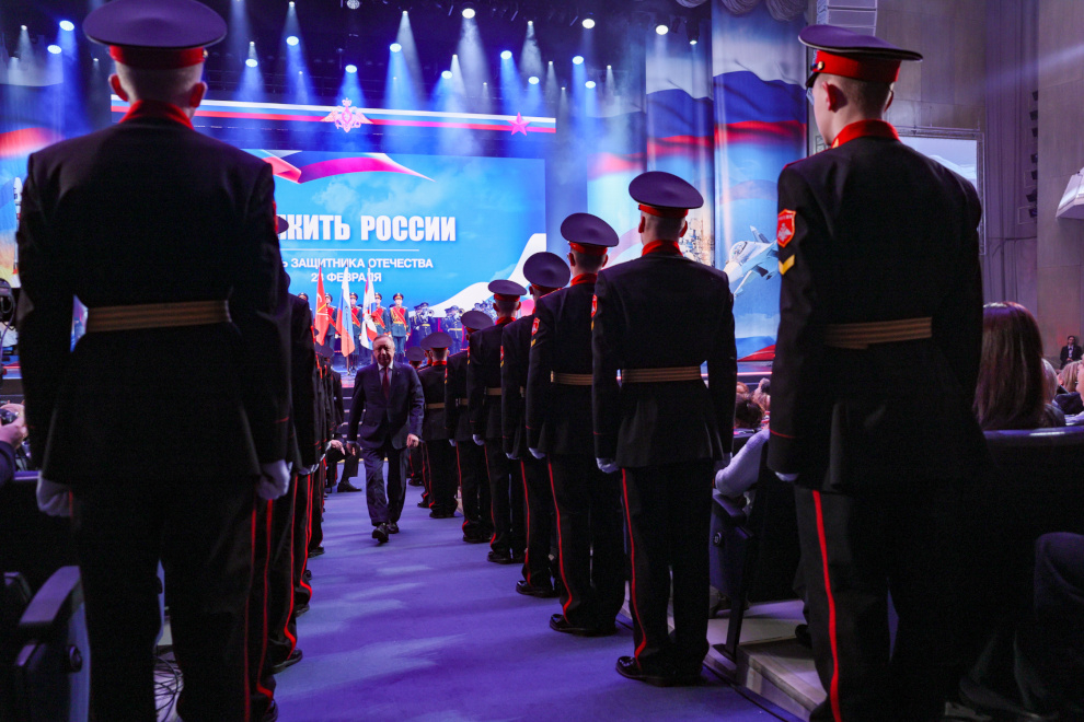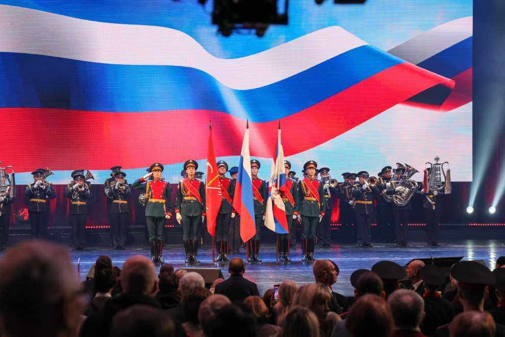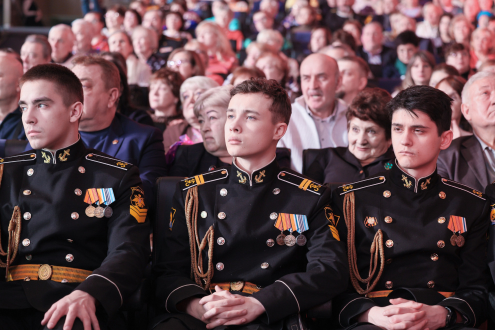 «Мы все служим России, и для нас всех это большая честь. С праздником, с Днём защитника Отечества!» — обратился губернатор к залу.