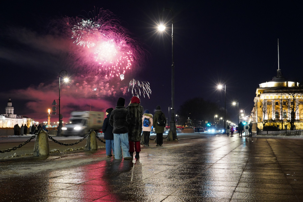 Сегодня вечером небо над Невой расцветил праздничный фейерверк. Одновременно расчёты Михайловской артиллерийской академии дали 30 залпов салюта, каждый из которых был именным. Они названы в честь Верховного Главнокомандующего Вооружёнными Силами РФ, Города-Героя Ленинграда, исторических побед российских и советских воинов, знаменитых отечественных полководцев и героев СВО. Последний залп был посвящён всем защитникам Отечества. Об этом сообщили в пресс-службе Смольного.
