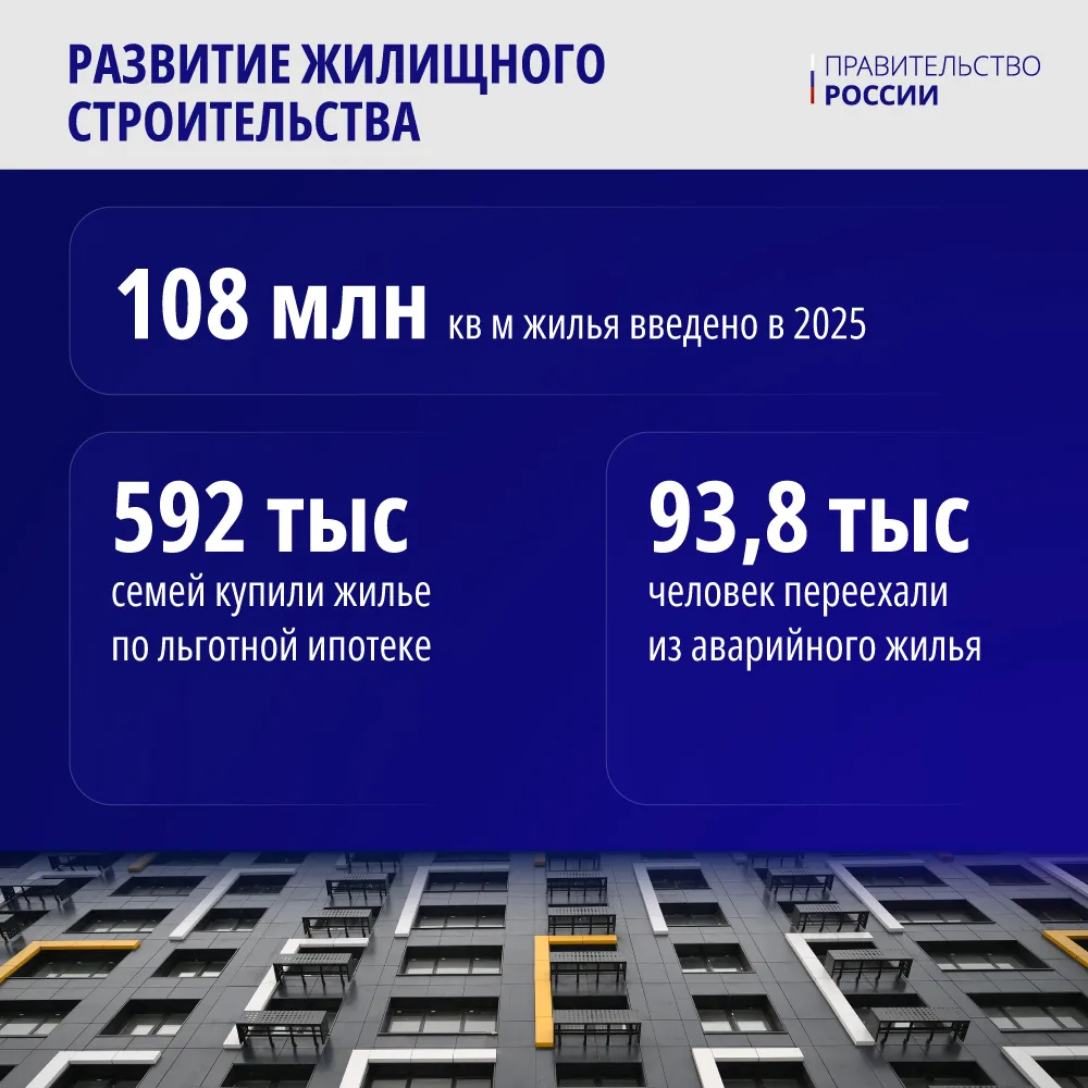 Идет и обновление жилищного фонда по всей стране. Так, в 2025 году еще порядка 100 тыс. человек переехали из ветхих и аварийных квартир в современные.