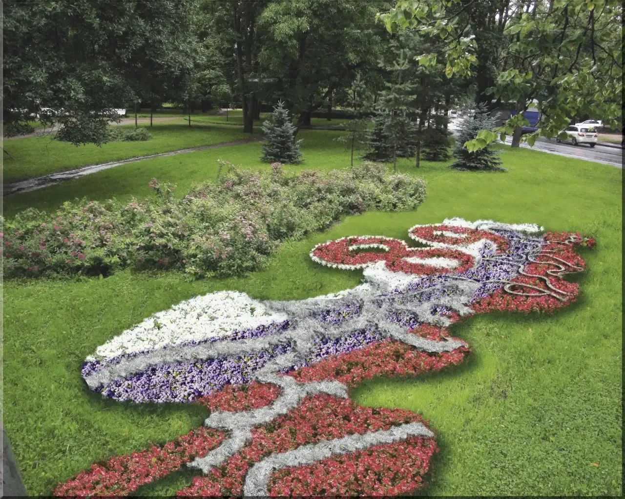 В Московском парке Победы тематический цветник расположится у входа в оживлённое и любимое посетителями место – площадку аттракционов. Это будет яркая фотозона, вокруг которой развернётся живой триколор из однолетних цветов.